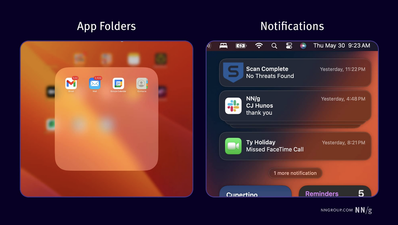 이제는 그림자와 블러 같은 시각적 기법만으로는 온전한 경험을 표현하기 어려워지고 있다. AI의 정보 처리과정은 시각화하기 어렵고, 쏟아지는 정보의 양을 감당하기 어려운 지경에 이르렀다. AI 인터페이스의 과도기적 형태로 애플은 더 화려한 그라디언트를 도입했지만, 더 많은 맥락을 전달하려면 UX 패턴을 자체를 새롭게 설계해야겠다는 판단을 했으리라 짐작해본다.