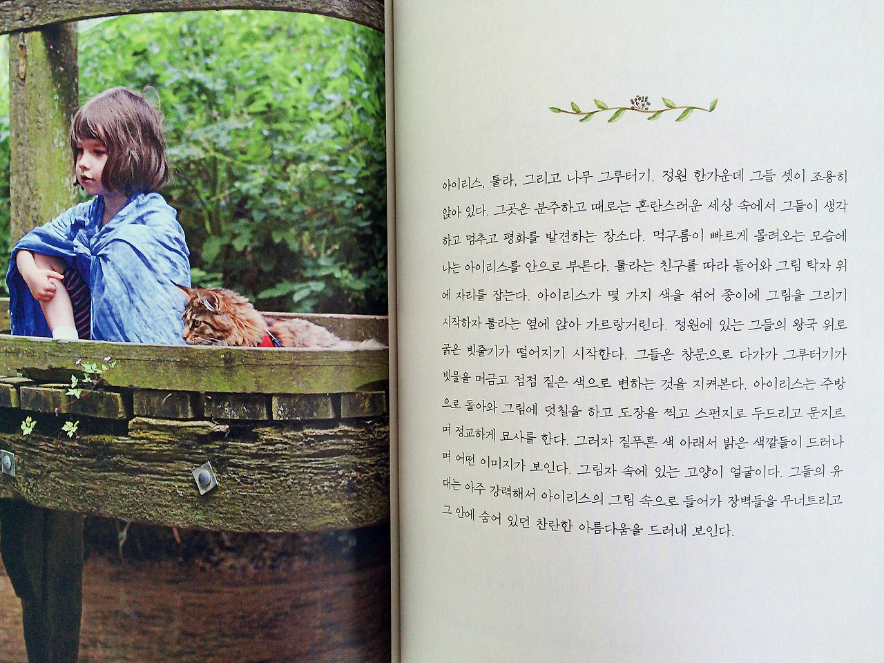 아이리스가 세밀한 부분에 흥미를 갖고 주의를 기울이는 것처럼 나도 아이리스의 눈을 통해 세상을 보기 시작하면서 섬세한 부분들을 알아차리게 되었다. 더 주의 깊게 귀를 기울이게 되었고 아름다운 것들을 감상하게 되었다. 내 자신의 감각 또한 살아나면서 더 깊이 세상을 이해할 수 있게 되었다.