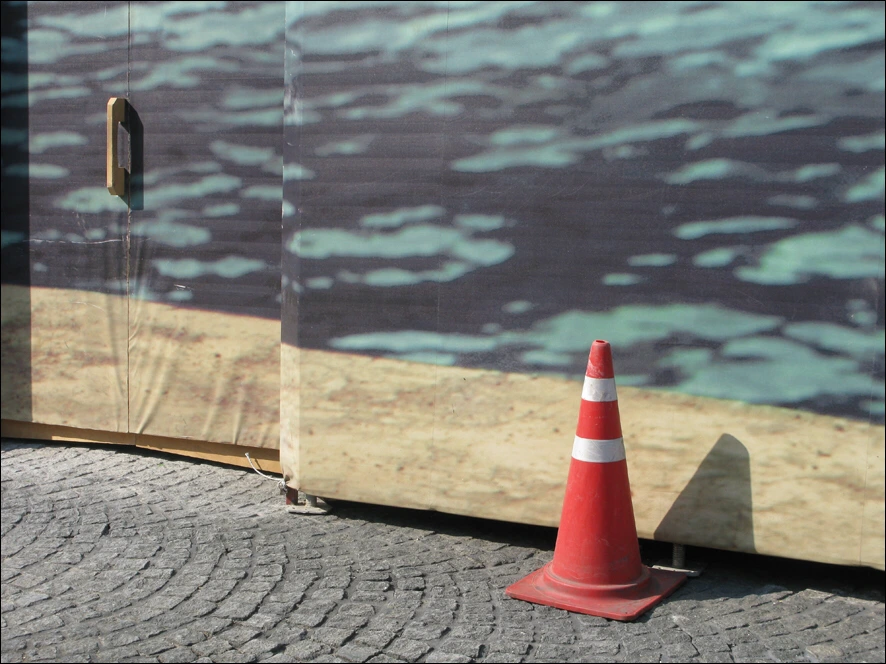 공사 중인 건물 앞, 가림막의 오렌지색 천이 빛을 받아 눈부시다. 완공되면 곧 사라질 입면. 짧은 운명이지만, 오늘 본 색 중 가장 강렬하다.