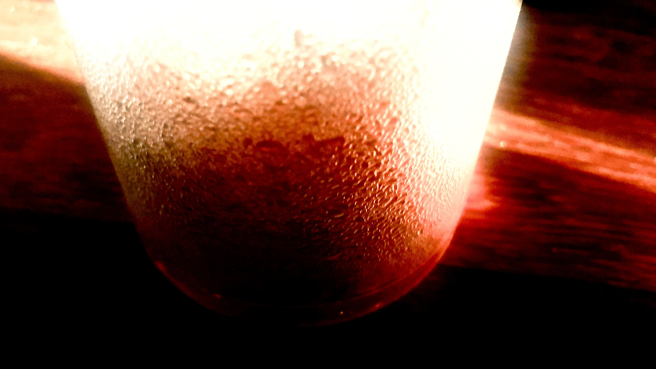 탁자 위 유리컵은 이전과 다른 모습이다.