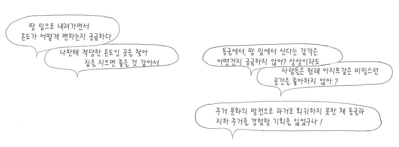 극한의 추위와 더위가 있는 곳엔 지하세계가 발달하기 마련이다. 기계장치의 도움 없이 항상 일정한 온도를 유지한다는 것은 너무 이상적이어서 우리에게 이질적인 느낌마저 준다.