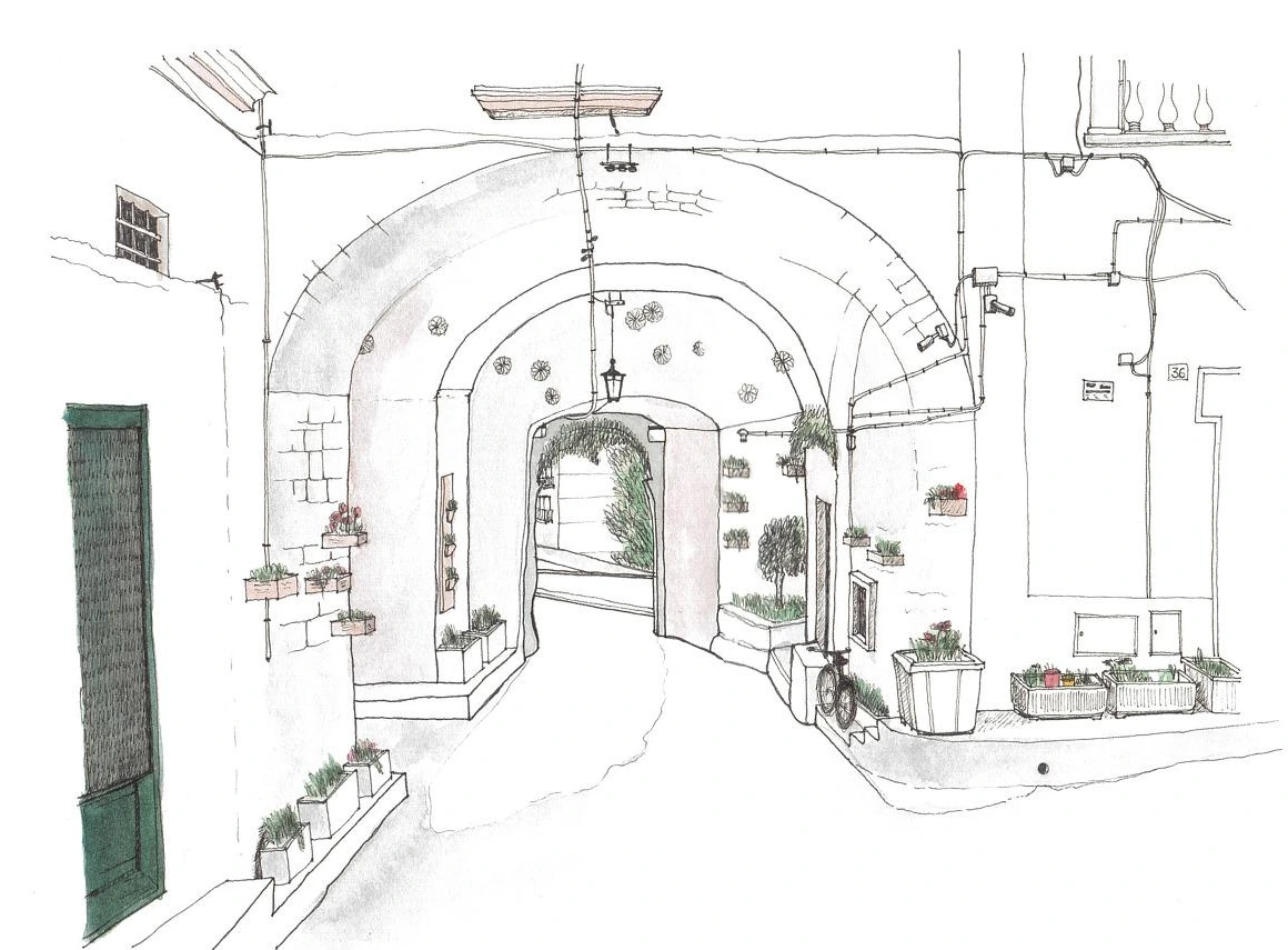 이탈리아 오스투니의 길을 걷다가 벽과 벽이 90도로 만나는 모서리에 여러 겹의 아치로 이어진 통로와 마주친다. 아치와 아치 사이는 주름처럼 접히거나 잘려 입구가 되고 화단이 되고 자전거와 화분을 올려두거나 잠시 앉아 쉴 수 있는 장소가 된다. 모두에게 열린 통로지만 매우 사적인 공간일 때만 가능한 존재방식으로 묘한 동거를 하고 있는 것이다. 통로 너머의 동네와 연결해주는 매우 유용한 공적인 공간이지만 그 모습은 매우 사적인 특별한 모습을 하고 있다.
