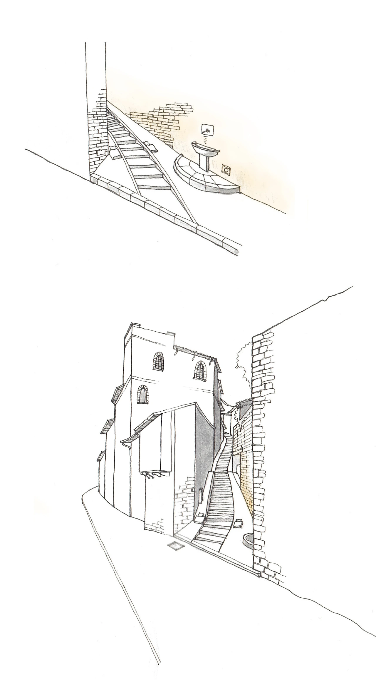 길을 걷다가 잠시 딴생각에 빠져 있다면 열에 아홉은 놓칠 법한 이탈리아 아시시의 작은 계단 골목길 앞에 선다. 작은 음수대가 골목길의 시작을 열어준다.
