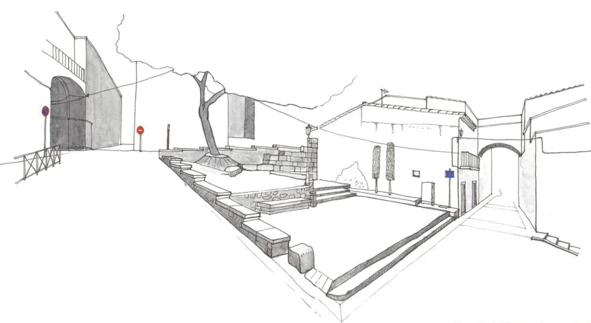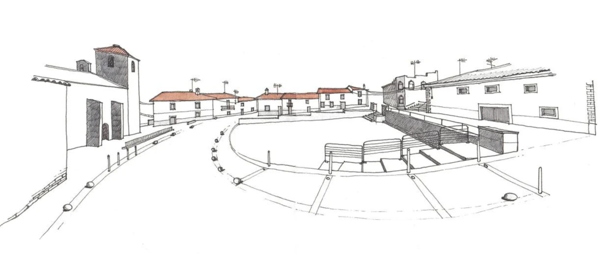 원 4분의 1조각에 가까운 독특한 형태의 플라자 에스파냐는 로만 고르도(Romangordo) 유일의 광장이다. 도시형성과정에서 광장으로 계획되었다기보다는 이미 형성된 불규칙한 가로 체계에 맞춰 만들어져 다른 곳에서는 볼 수 없는 이형의 모습을 띠게 된 것이 아닐까 생각된다. 경사에 의해 반쯤 땅에 묻히고 낮은 건물들에 촘촘히 둘러싸인 부채꼴 광장은 물리적 형태가 장소의 성격을 결정짓고 그곳에서 일어나는 행위에 영향을 미친다. 그래서 작은 마을의 축제와 이벤트가 광장의 형태에 맞춰 계획되고 이루어진다.