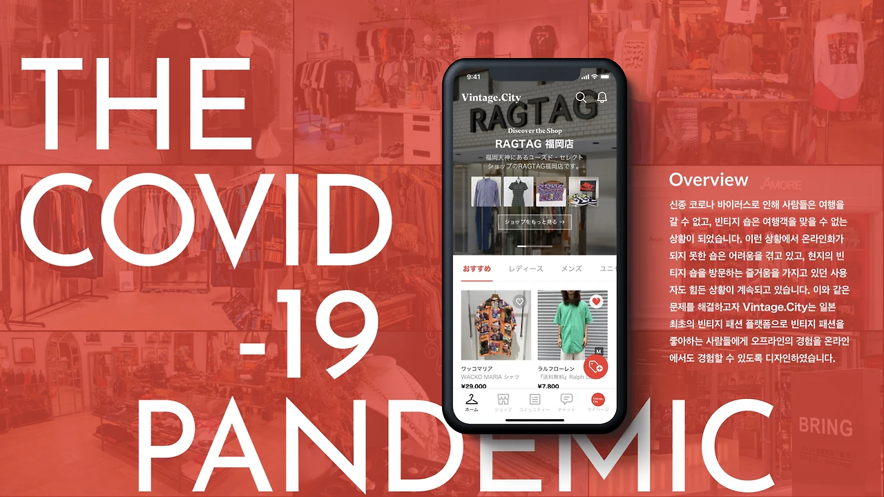 일본 시장에서 커머스 관련 산업을 발굴하는 TF에 합류해서 개발을 시작한 Vintage.City(이하 VC)는, 도쿄의 빈티지샵들을 기반으로 2020년말 일본 앱 스토어를 통해 서비스를 런칭했습니다. 빈티지 샵 셀러 뿐만아니라, 개인들도 누구나 자유롭게 상품을 판매 및 구매할 수 있는 빈티지패션 커머스 앱입니다.