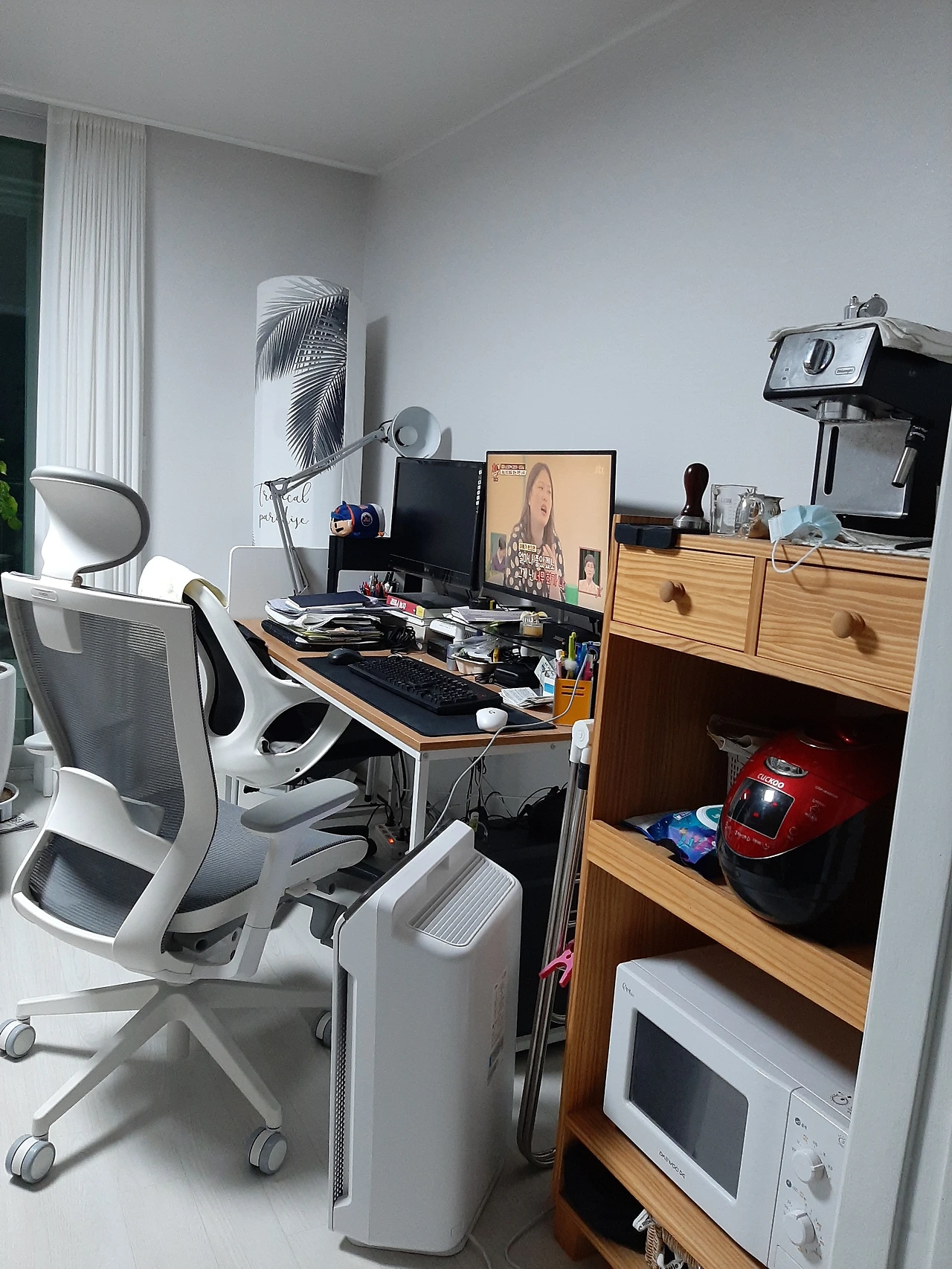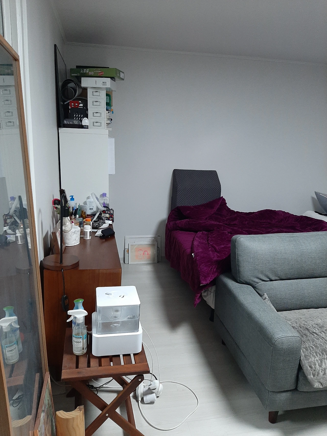 재택근무가 길어지면서 작은 거실의 한쪽 공간은 아내의 데스크톱과 나의 노트북이 놓여졌고 테이블 맞은 편은 버리지 못하고 가져온 회색빛의 3인용 소파 그리고 그 뒤에 침대를 두었다. 나머지 작은 방은 옷방이어서 우린 어쩔 수 없이 거실공간에서 일을 하고 쉬면서 잠을 잤다. 그렇게 우리는 의도치 않게 서로의 모습을 관찰하기 시작했다.