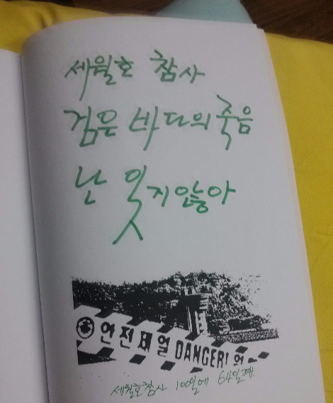 광화문 광장에서 천막을 치고 진상 규명을 하는 유가족들을 한 번은 봬야 할 것 같아 그곳을 갔습니다. 진실은 감춘다고 감추어지는 것이 아닙니다. 역사는 잊는다고 사라지는 것도 아닙니다. 독재는 그 어떤 말로 덧칠을 해도 독재입니다. 이 모든 것들을 역사는 결코 무죄로 하지 않을 겁니다.