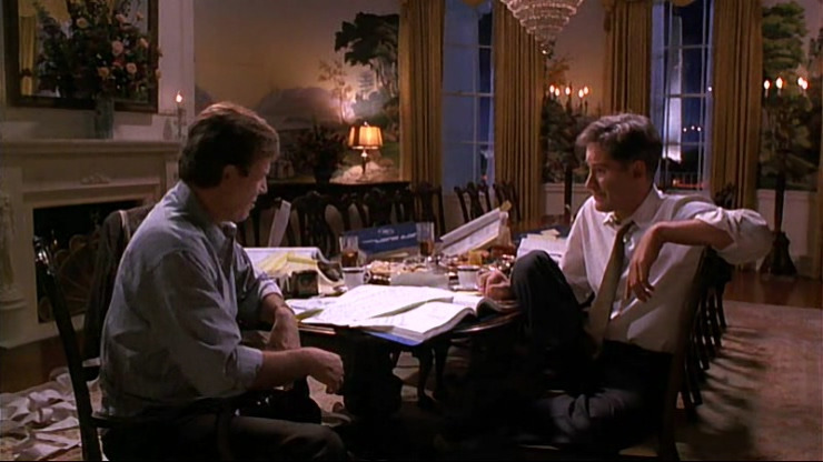 대통령 미첼은 볼티모어 연설을 끝으로 그의 개인적 일탈이 그를 영원히 잠들게 합니다. 그리고 우리의 주인공 데이브에게 그 역할이 맡겨집니다. 대통령의 비서와 측근에 의해 움직이던 데이브에게 영부인은 하나의 계기를 주게 됩니다. 그녀가 원했던 “무주택자 법안”을 정부가 예산 부족으로 거부하면서, 문제를 의식하게 됩니다. 데이브는 정부 예산안을 검토하기 위해 친구의 도움으로 공부를 합니다. ‘사실’과 ‘진실’에 대해 판단할 수 있게 되는 것이지요. ‘무주택자 법안’을 살릴 예산안 재검토를 하게 됩니다.