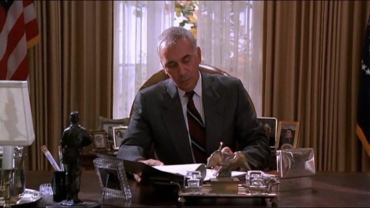 영화 비서실장 밥이 대통령대신 법안 처리에 사인한다.