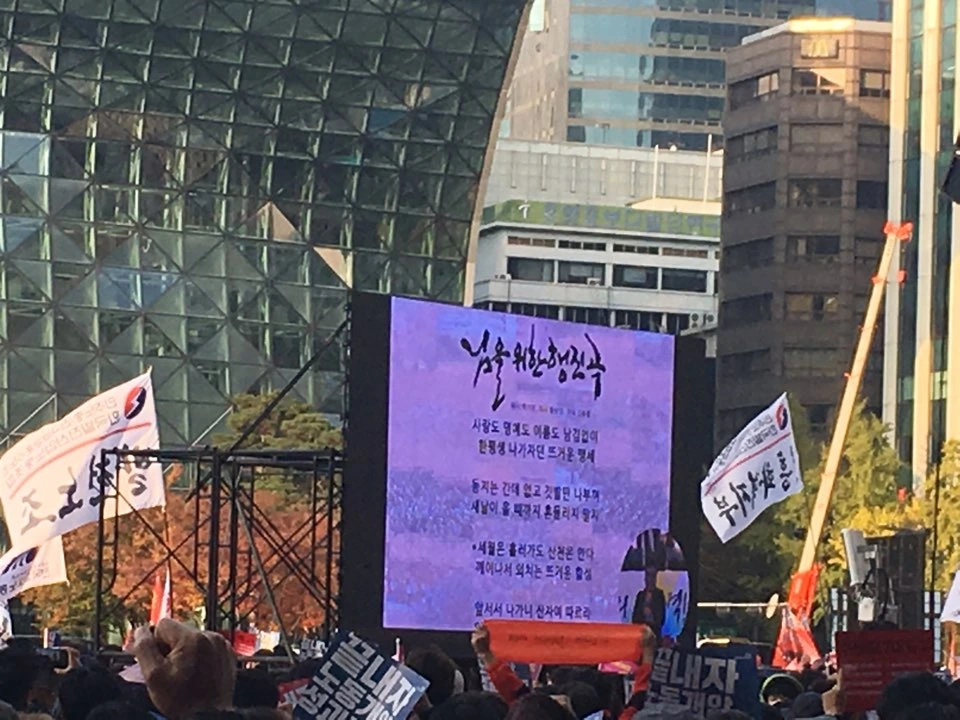 우선은 대통령의 자리에 있는 사람이 행진의 민의를 정확하게 알아차릴 수 있기를 바랍니다. 11월 12일 역사의 현장에서 사람이 모여 인간으로 거듭 태어나는 황홀한 시간을 온몸으로 느껴봅니다.