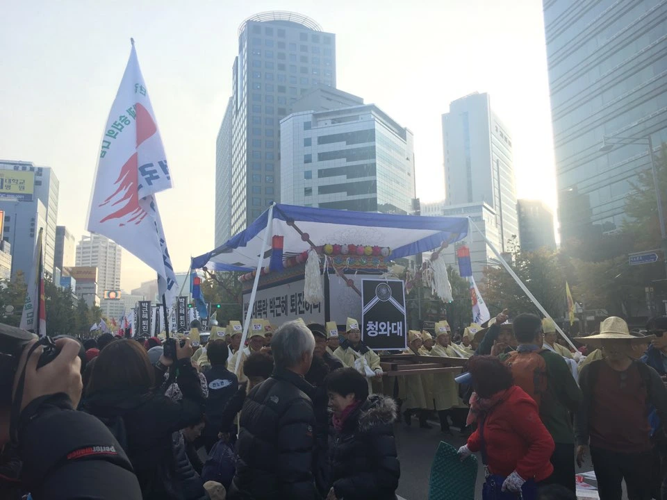11월 12일 오후 3시 15분에 서울역에서 일행을 만나 실감이 듭니다. 이미 사람으로 가득 채워진 시청 광장에서 목격한 이 장례 행진에 이토록 유쾌할 수 있어도 되는 것인지... 하. 하. 하. 그래도 웃습니다.