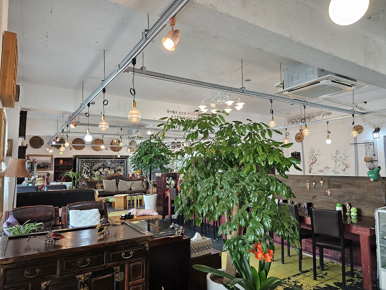 개인이 원하는 자리로 옮겨서 개인적인 글쓰기를 시작할 수 있는 여우골 레트로 카페 내부