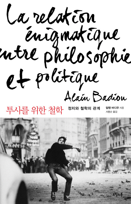 바디우가 그의 저서 『투사를 위한 철학』에서 말하는 것은 실제 아주 간단하다. 자기 자신의 삶을 살아가라는 것이다. 자기 자신을 반복적인 자동성에 맡김으로써 스스로를 방치하지 말고, 진리를 확신하는 주체의 삶, 이념을 지닌 삶을 살아나가라는 것이다. 하지만 그것은 대단히 피곤한 삶이다.