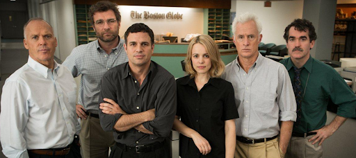 스포트라이트는 단순히 한 방향으로 흘러가는 취재의 깊이에 의존한 스릴러에만 기대지않고 자아비판적인 국면을 보여준다. 이미 여러번 진실을 보도할 수 있었던 기회를 '보스턴 글로브' 스스로 외면하고 망각했었다는 사실을 알게되면서 그들의 진성성에 대해 의문을 품게 한다. 또한 9/11 테러 발생과 관련해 보도시점을 조절해야 했던 점은 보도 조절의 적절한 효과를 보여줌과 동시에 인위적인 조절에 대한 우려 또한 품게하기도 했다.