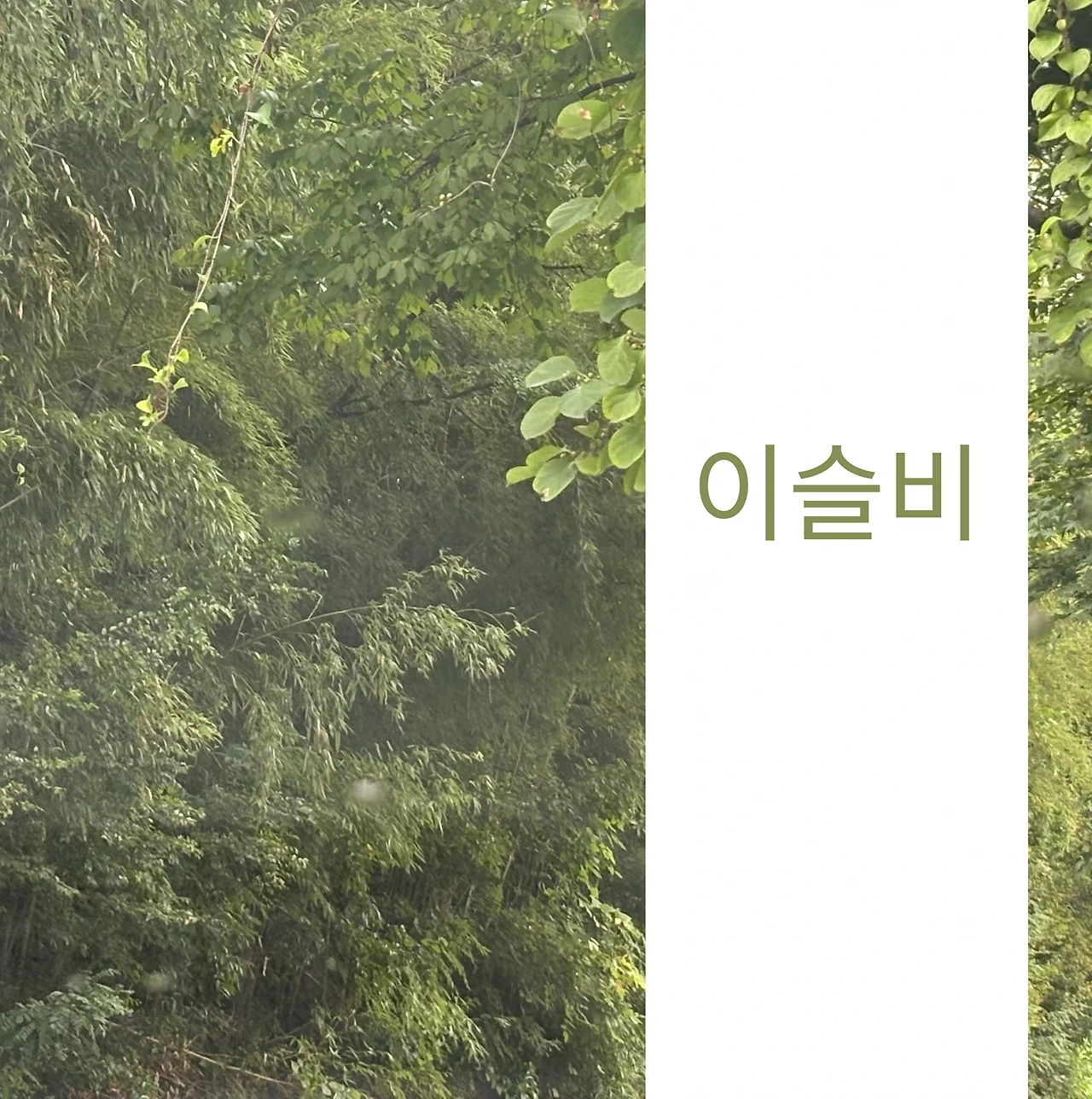 작은 물방울들은 투명한 공기의 진동과 함께 뿌리 사이를 타고들며 오래된 생명들을 깨운다. 이슬비는 잠시 머물 뿐이지만, 숲의 순간을 늦추며 그 흔적을 깊게 새긴다.