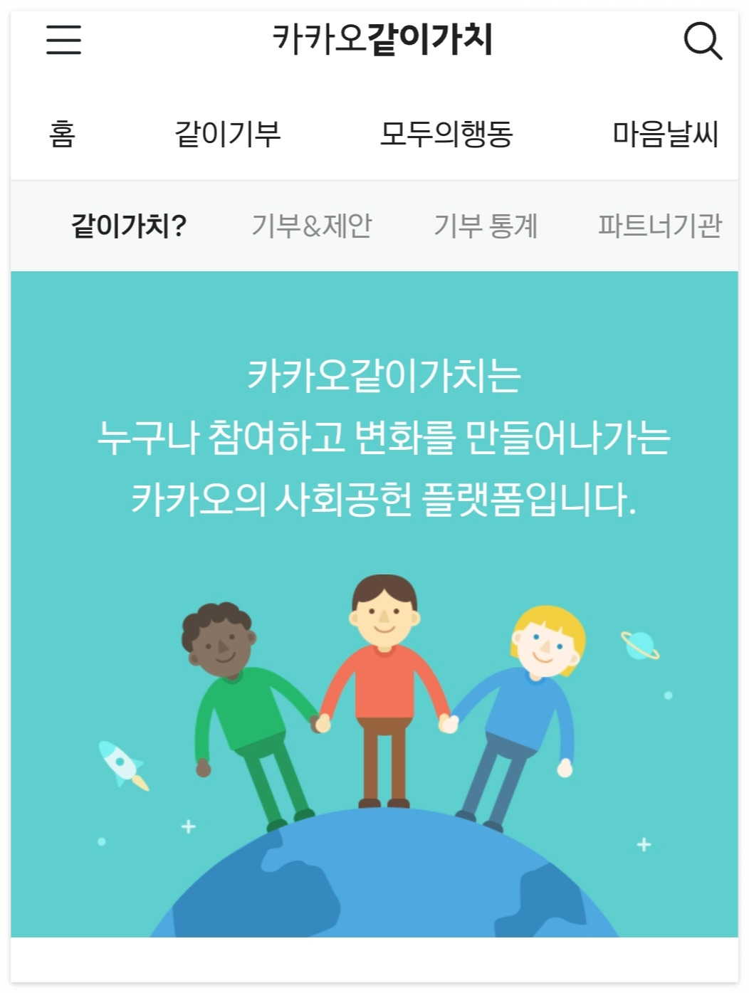 카카오같이가치에 접속한 후 상단의 '같이기부'를 클릭하면 각각의 모금 프로젝트를 확인할 수 있다. 프로젝트를 클릭 후 화면 하단의 응원을 눌러 하트에 분홍빛이 들어오면 카카오가 100원을 이 모금함에 기부한다. 댓글을 달아도 100원을 카카오가 기부한다. 분홍색의 기부하기 버튼을 누르면 내 돈을 이 모금함에 기부할 수 있다. 나에게 당장 돈이 없어도 응원과 댓글로 기부에 참여할 수 있고, 마음이 움직인다면 기부하기 버튼을 눌러 직접 기부도 할 수 있다. 기부가 더 이상 먼 일이 아닌 것이다. 나는 월 1~2회 정도 접속해 응원을 누르고 댓글을 달며 지금의 마음을 전하고 있다.