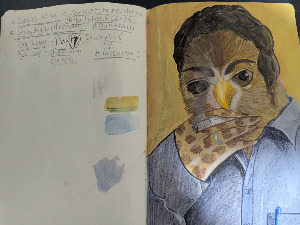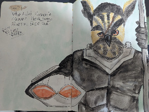 대략적으로 내가 그리고 싶은 스타일은 알겠는데, 아직 정확히 표현할 수 없을 때가 있다. 그럴 땐 일단 적는다. 때로는 그릴 대상을 먼저 종이에 적어가며 이미지를 구체화하기도 한다. 얼마 전 인물을 아울로 그릴 때도 그랬다. 인물의 이름, 아울의 종류, 어떤 이미지로 표현하면 좋을지를 먼저 적고 나서야 스케치를 시작할 수 있었다.