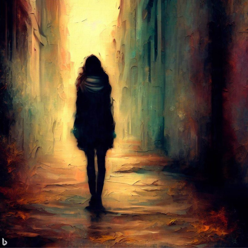The girl who takes a walk in the street of a city, Digital Art. KSM.