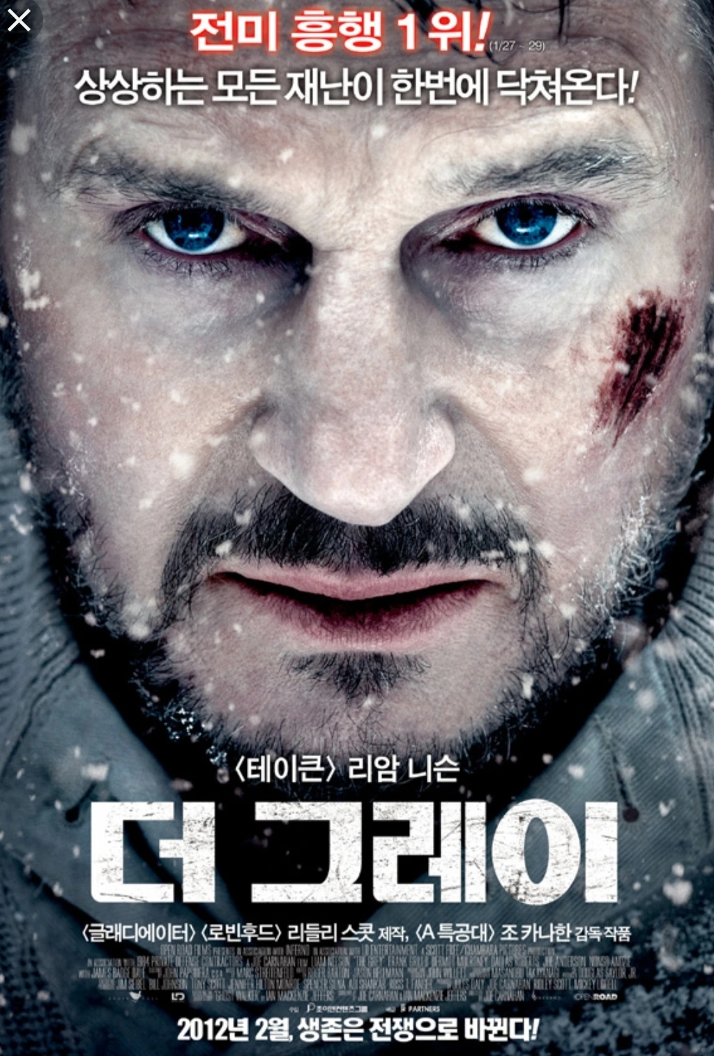 영화 <더 그레이>는 비행기 추락사고 조난 이후 생존기를 다룬 영화 <Alive>를 생각하게 할 만큼 늑대와 인간의 생존을 다룬 영화이다.