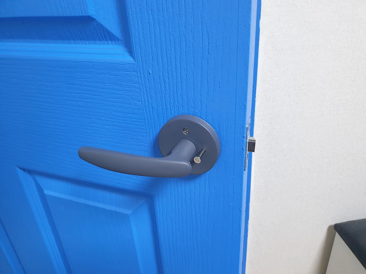 여기에 도어락은 짙은 스레이를 택했다. 공간에서 문은 안과 밖을 구별하는 매체이다. 자물쇠를 밖에서 잠구는 방법도 있었다. 안에서 갇히면 못나가는 것은 밖에 열쇠가 존재할 때였다.