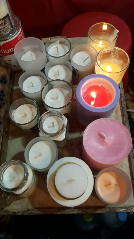 초는 한 겨울에 따뜻한 느낌을 가져다. 한동안 양초를 만드는 것을 취미로 한 적있고 지금도 그 여파에 양초는 만들어서 쓴다. 만만치 않는 준비작업이 필요하지만 실제 해보면 간단하다. 우선 양초의 몸통이 될 왁스를 녹인다. 특별한 도구가 필요한 것이 아니라 왁스를 넣을 주전자가 필요하고, 심지와 용기가 필요한데 열에 녹인 왁스를 물을 붓듯 붓고 응고되기를 기다리면 된다. 물론 용기에 녹인 왁스를 넣으면 될테고 심지는 그 전에 수직으로 세우는데 나무젓가락 혹은 양초홀더로 고정을 한다. 그리고 왁스를 부어서 굳으면 그것으로 완성이다.