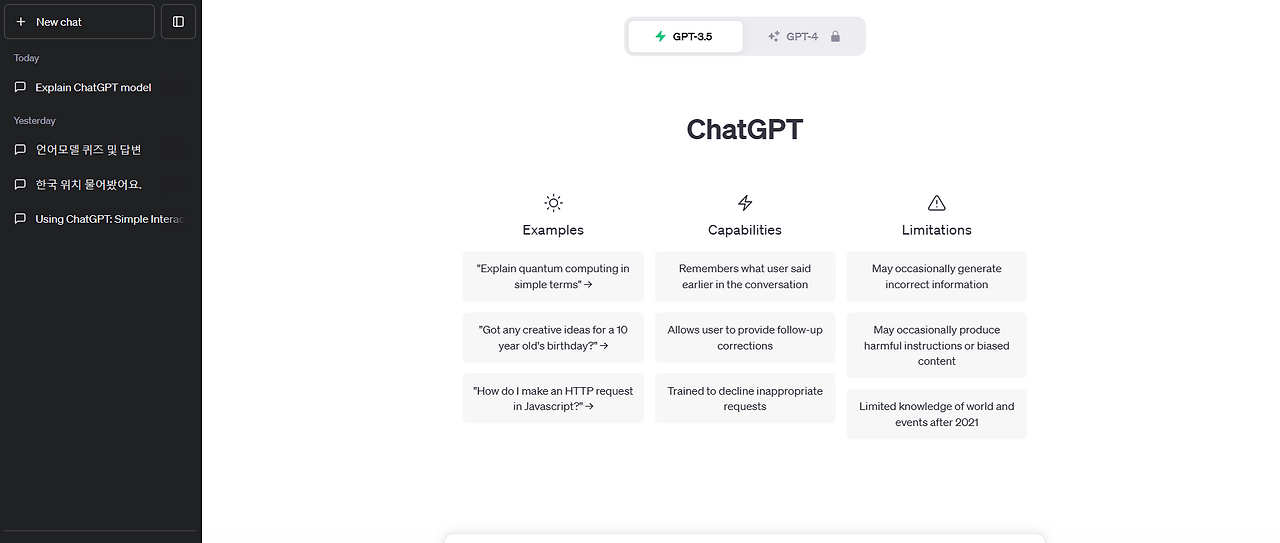 그림 3. Chat GPT Main Screen