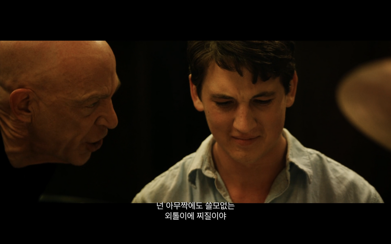 그동안 죽도록 노력한 모든 시간과 흘린 피와 땀의 가치를 지키기 위해, 꿈에 도달하기 위해 포기해야만 했던 것들 그리고 인정하고 싶지 않은 오만하고 부끄러운 실수들을 외면하기 위해, 앤드루는 반드시 플레처의 인정과 플레처가 이끄는 밴드의 메인드러머 자리를 지켜내야만 했다. 그게 더넬런 경연에서 교통사고가 당한 상태로 비틀거리며 경연장으로 향했던 이유고, 피투성이가 된 채로 무대에 올라 드럼을 쳐야만 했던 이유다. 하지만 안타깝게도 기적은 없었다. 앤드루의 몸은 이미 드럼을 칠 수 있는 상태가 아니었다. 넌 끝이라는 플레처의 선언과 함께 앤드루의 음악 인생도 끝나고 말았다. 그제야 앤드루의 분노는 플레처를 향했다. 꿈을 향한 여정이 끝났다는 사실을 받아들인 순간, 자신을 그토록 괴롭히고 불안과 공포에 빠뜨린 플레처를 향한 분노가 뻗어나갔다. 앤드루의 분노는 플레처의 폭력적이고 가학적인 교육방식의 문제를 수면 위로 끌어올렸다. 끝을 맞이한 건 앤드루뿐만 아니라 플레처도 마찬가지였다.