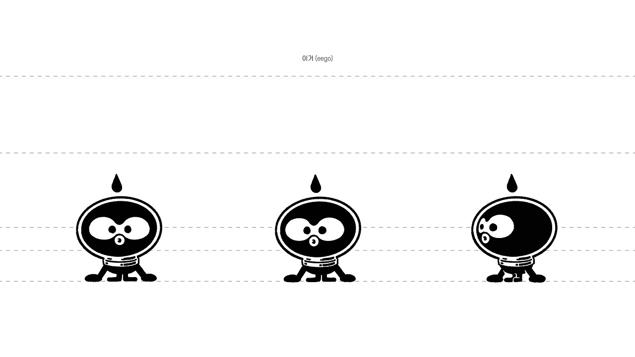 자, 이왕 이렇게 된 거 영어 이름까지 지어줘야 제대로 마무리했다고 할 수 있지 않을까요? '일거'는 'ilgo'를 그대로 사용하고, 일거(ilgo)에 사용된 작명 규칙에 따라 '~go'를 돌림자로 사용하는 캐릭터 세트를 만들고자 했습니다. '이거'는 자아를 의미하는 'ego'를 활용해, 'eego'로 정했습니다. 'ee'를 사용해 '이' 발음을 유도하고 4개의 철자를 동일하게 사용해서 더욱 일관성을 강하게 부여하고자 했습니다. '저거'는 '거'의 발음을 'go'로 하고 있었으므로, '저' 역시 'jo'로 표기해 'jogo'로 이름 지었습니다. 발음도 귀엽고 'o'가 두 번 사용되어 이거(eego)처럼 같은 철자가 반복되는 형태와 4개의 철자로 구성된 이름이라는 일관성을 유지했습니다.