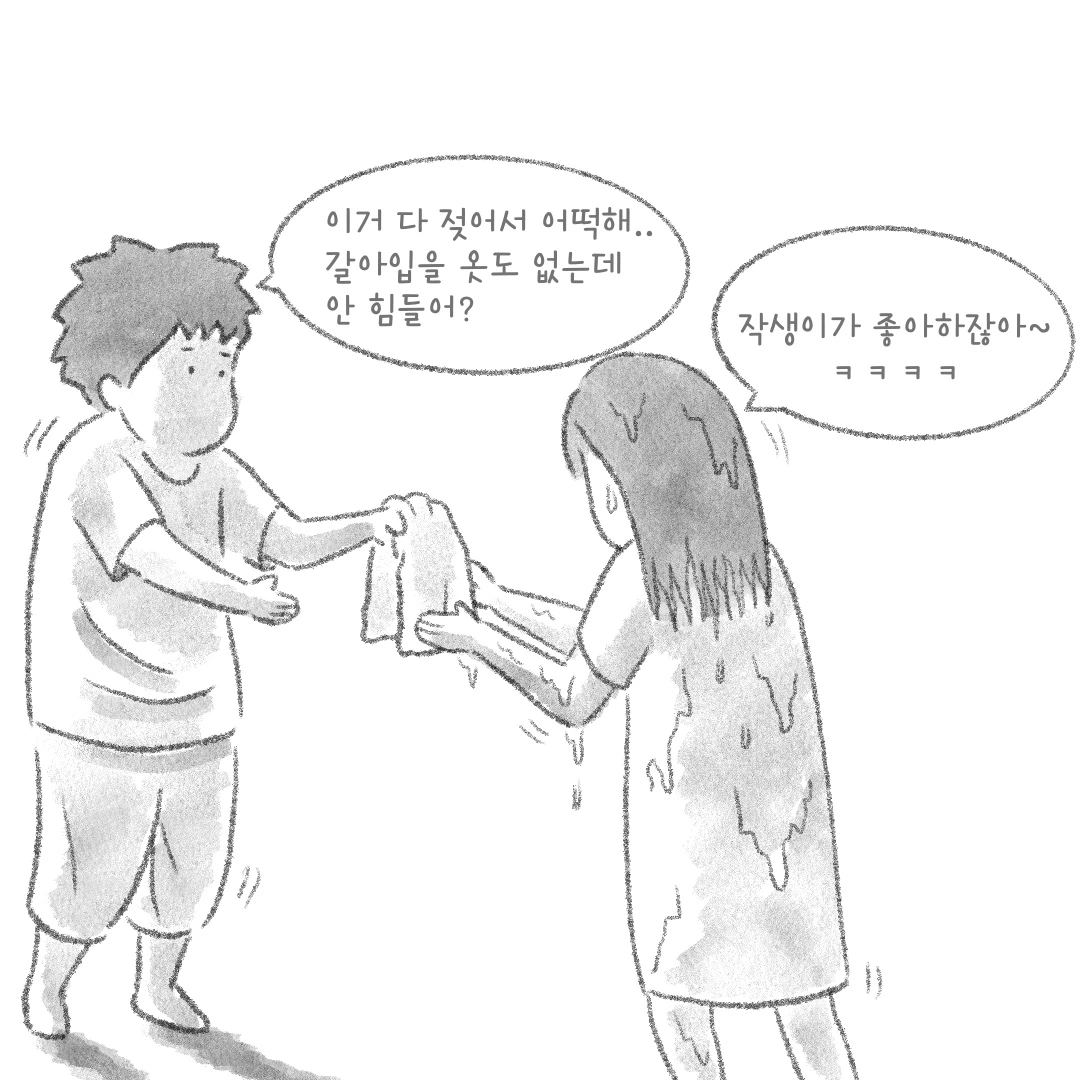 갈아입을 옷도 없는데… 안 힘들어?”
