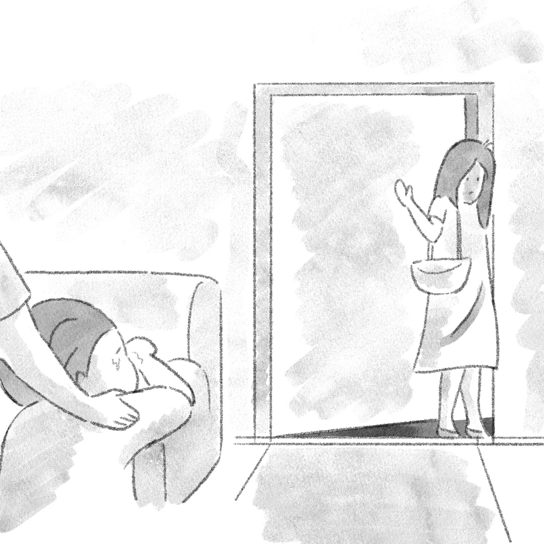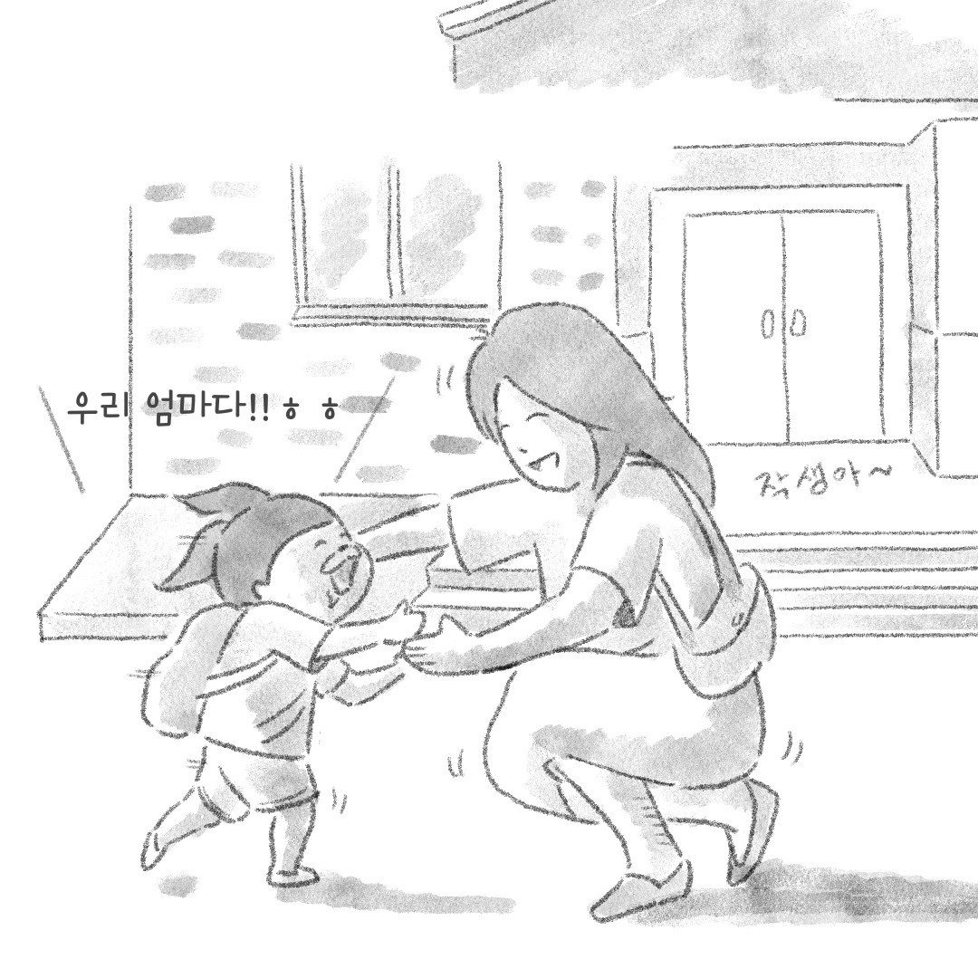 현관을 나서는데 아이가 울음을 터뜨린다…