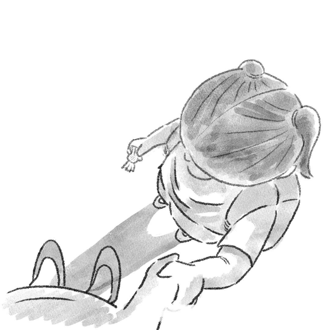 신이 난 아이를 내려다본다