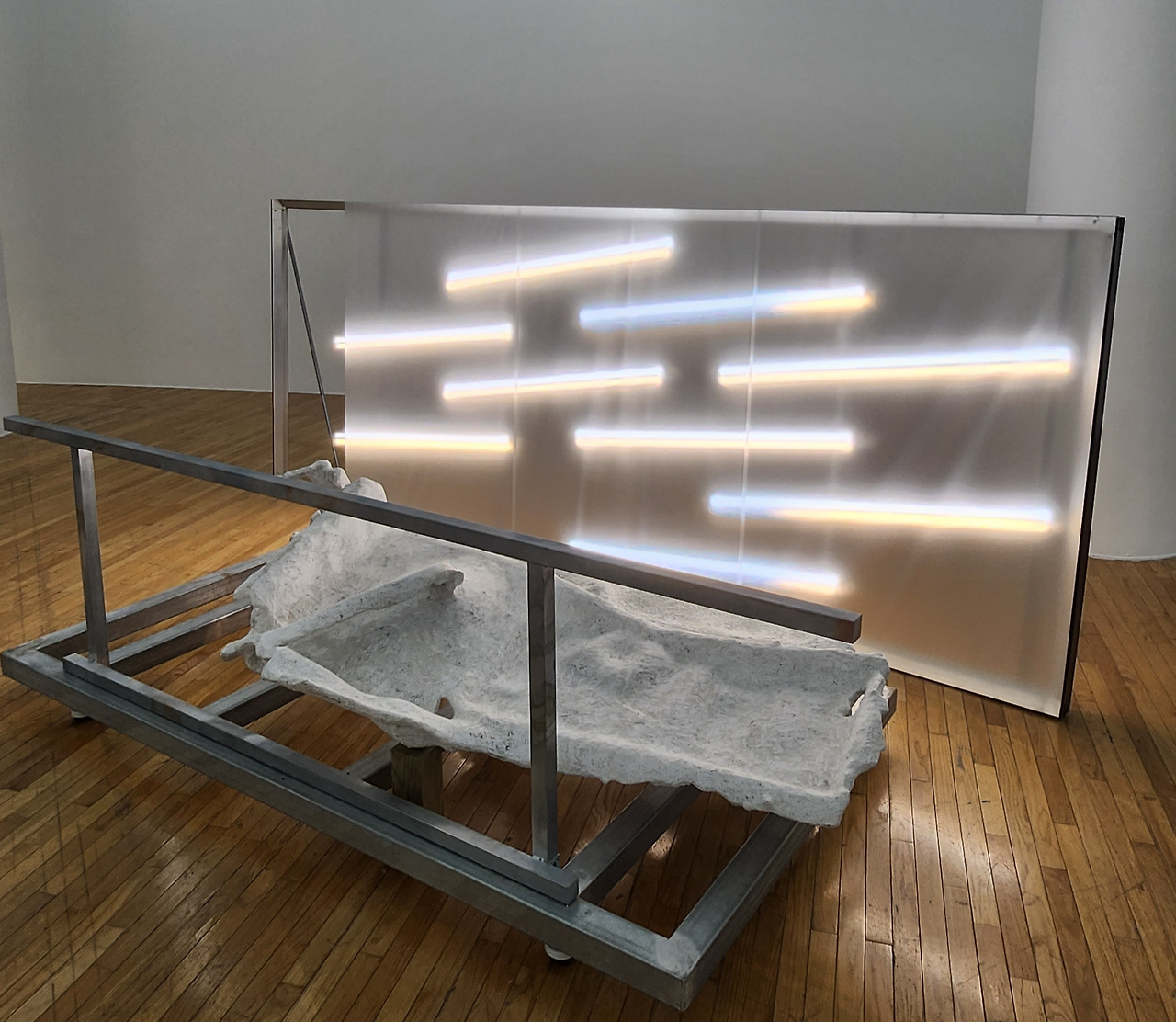 정지현 작가의 작품들은 사물들이 변화해 온 역사나 의지의 끝없는 소급을 해명하지 않은 채 그대로 방치한다. 이러한 방치는 관람자들에게 일종의 공허함을 느끼게 한다. 전시장을 비추고 있는 작가의 <더블데커>(2018, 2022 재제작)는 이러한 공허함을 관람자에게 전달한다. 더블데커의 빛은 관람자를 특정한 목적이나 기능으로 인도하지 않으며 오로지 비출 뿐이다. 더블데커의 빛 앞에서, 그 앞에 놓인 차가운 작품과 관람자의 경계는 모호해진다. 이러한 모호함은 알 수 없음이 가득한 세계 속에 던져진 알 수 없는 나를 느끼게 한다. 이러한 당혹감을 작가의 전시 《행도그》에서 느낄 수 있다. 이때 관람자들은 자연스러움과 인공적임의 경계를 지을 수 없는 당혹감에서 인식의 한계를 느끼게 된다. 관람자들이 인식의 한계에 마주 했을 때 느끼는 표현불가의 영역을 정지현 작가는 새로운 재배치를 통하여 자신의 작업으로 표현하고자 한다.
