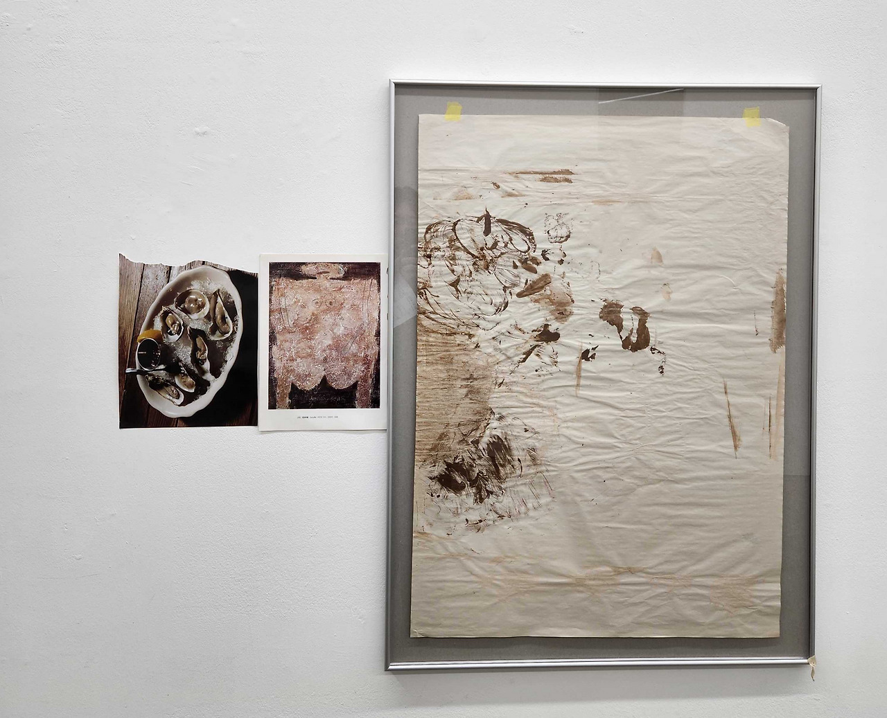 또 다른 전시명 《Kaput》은 머리를 뜻하는 라틴어 'caput'에서 파생된 단어로 '쓸모없어진' 혹은 '부러진'이란 의미를 가지고 있다. 의역하면 '끝장나다' 정도가 될 것 같다. 어쩌면 종이 위에 뭉개진 갈색 흔적들은 바닥에 흩뿌려진 진흙처럼 정말로 "끝장난' 상태일 수도 있다. 동시에. 반대로 갈색이 쓸려간 흔적들이 그 끝장난 상태를 청소하기 위한, 한숨이 담긴 노동의 손짓일 수도 있다. 어느 해석을 따르든 《Kaput》은 완결의 여운이 느껴지는 의미들을 담고 있다. 하지만 이때 완결에서 느껴지는 여운은 고귀하거나 숭고하지 않다. 그저 누군가가 엉망진창 저질러버린 완결이다.