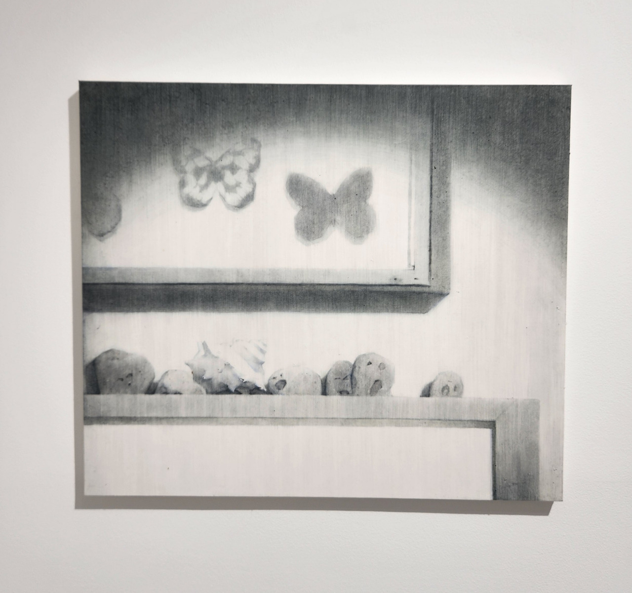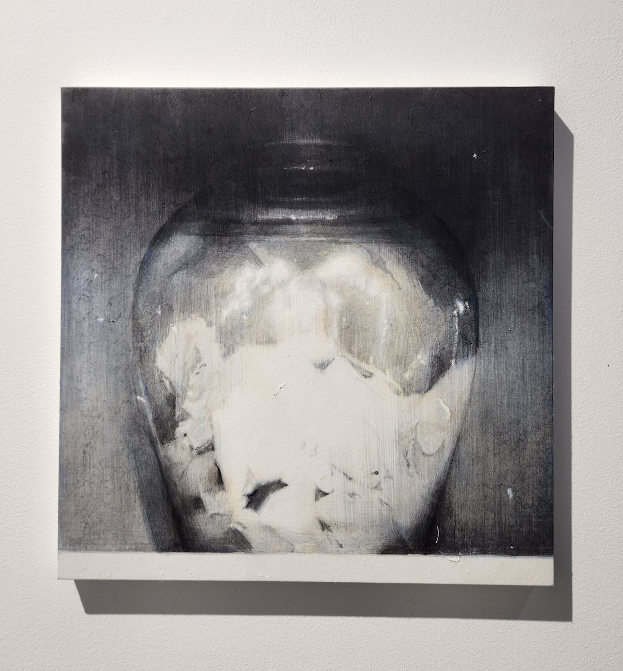 작가는 이미 지나가버려 그때, 그것이 된 기억들의 빛바램을 서정적인 색채로 담아내어 회상한다. 기억 속에는 눈앞을 기웃거리는 무수한 잡담들과 이어지지 않는 혼재된 여백들이 떠돌아다니며 우리의 시선을 흐린다. 그럼에도 작가는 그것들에 귀를 기울임을 놓지 않으며, 회상 과정 속 노이즈와 질감 또한 함께 담아내어 내용의 깊이감을 더한다. 잡담들 사이에 놓인 존재사건들을 영사기의 재생을 지속하듯 작가는 침묵의 가시화를 통해 끊임없이 회상하고자 한다.