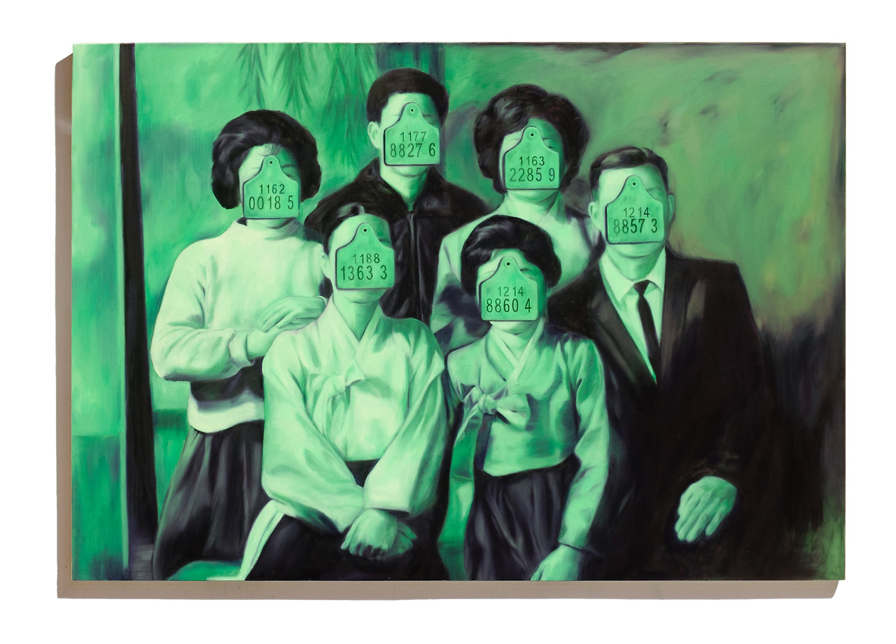 김유림의 작업 속 이표에 가려진 얼굴들은 현재의 우리가 과거를 회상하며 바라보는 인물들이지만, 가족공동체의 역사성을 통해 이어지는, 일상성을 띄고 살아가는 —그리고 지금도 살아가고 있는— 사회구성원들의 얼굴과 겹친다. 작가의 작업에서 젖소의 귀에 붙은 이표는 농장의 통제 장치이자, 존재를 식별하고 기능화하는 사회적 구조의 축소판이다. 그리고 이것을 지각할 때, 작업 속의 이표에 가려진 그들은 과거의 어딘가에서 묵묵히 반복되는 삶을 살아갔던 사람들 —대체 가능하고, 규칙적으로 노동하고, 조용히 사라진 존재들—과 겹쳐지기 시작한다. 그들은 이름이 없는 것이 아니라, 이름이 특별할 필요 없던 사람들이었다. 평범하게 출근하고, 가족을 먹여 살리고, 병에 걸리고, 노쇠하고, 아무 일 없이 하루를 마감했던 사람들. 그들의 삶은 영웅적이지 않았고, 드라마틱하지 않았다. 그럼에도 그들은 매일같이 생을 반복하고, 타인과 관계 맺고, 누군가를 위해 기능하는 삶을 살아냈다. 작가의 작업 속 이표는 그런 삶의 형식을 축약한다.