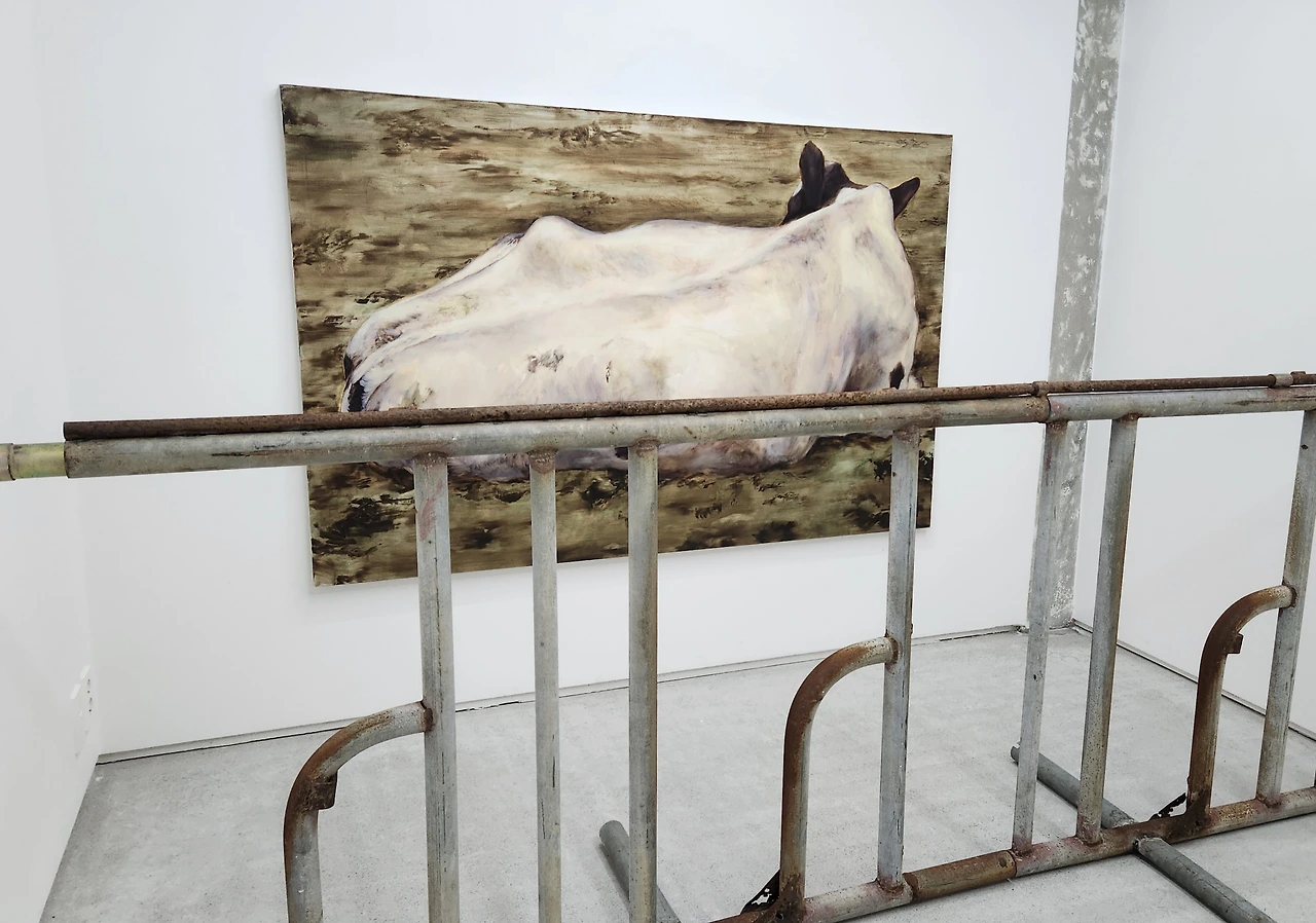 이때 느껴지는 거리감은 단순히 물리적 거리에서만 기인하는 것이 아니다. 이것은 세계를 인식하고 응시하는 관점의 거리감이다. 김유림의 작업들에는 ‘울타리’가 명시적으로, 또는 암시적으로 자리한다. 그 울타리는 젖소와 인간 사이의 경계임과 동시에, 주체와 객체, 그리고 나와 그들을 나누는 기호가 된다. 우리는 항상 ‘이쪽’에서 바라보고 있다는 전제를 안고 있으며, 그 반대편에 놓인 존재—‘그들’—는 대상화된다. 그러나 이러한 거리감은 우리에게 냉소나 단절의 표현으로만 전해지는 것은 아니다. 이것은 오히려 그 거리에서 시작되는 사유와 공감, 그리고 소통의 가능성 또한 열어준다.
