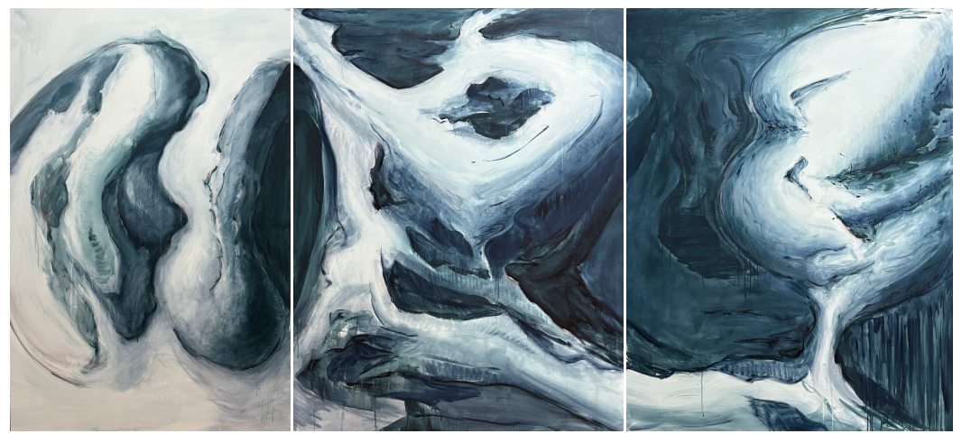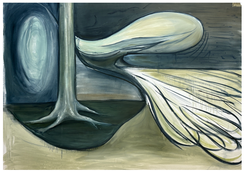 돌아보니 이것은 이것을 다시 삼키기 위한 과정이었다. 감정은 자기 멋대로 흘러나왔다가, 결국에는 다시 자기에게 돌아온다. 그때는 이미 다른 모양 —부드럽고, 느리고, 닳은 것—으로, 가라앉는 동안 이것은 조금씩 변해 있었다. 감정을 삼킨다는 것은 그것을 이해한다는 뜻이 아니다. 그저 더 이상 아프지 않은 방식으로 받아들이는 일이다. 박유빈의 회화는 그러한 소화의 언어를 탐색한다. 뱉고, 잠기고, 삼키는 과정 속에서 이것은 사라지지 않고, 끊임없이 되어갈 뿐이다. 덩어리는 여전히 내 안에 있지만, 이것을 거부하지 않는다. 이것은 조용히 다시 내 안의 물로 섞인다. 하지만 여전히 숨을 고르면, 미세한 울렁거림이 남는다.