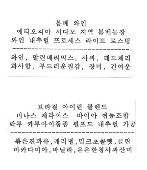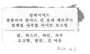 와인 한 병을 다 마시기가 부담이었는데 원두에 '와인, 위스키'가 들어가서 바로 골랐다. 정말 와인향이 느껴지는 커피였다. 설명에 쓰여있는 것처럼 긴 여운이 남았다. 그림 그리거나 뭔가를 할 때 음료를 꼭 옆에 두고 마시게 된다. 내일은 어떤 음료를 마셔볼까.