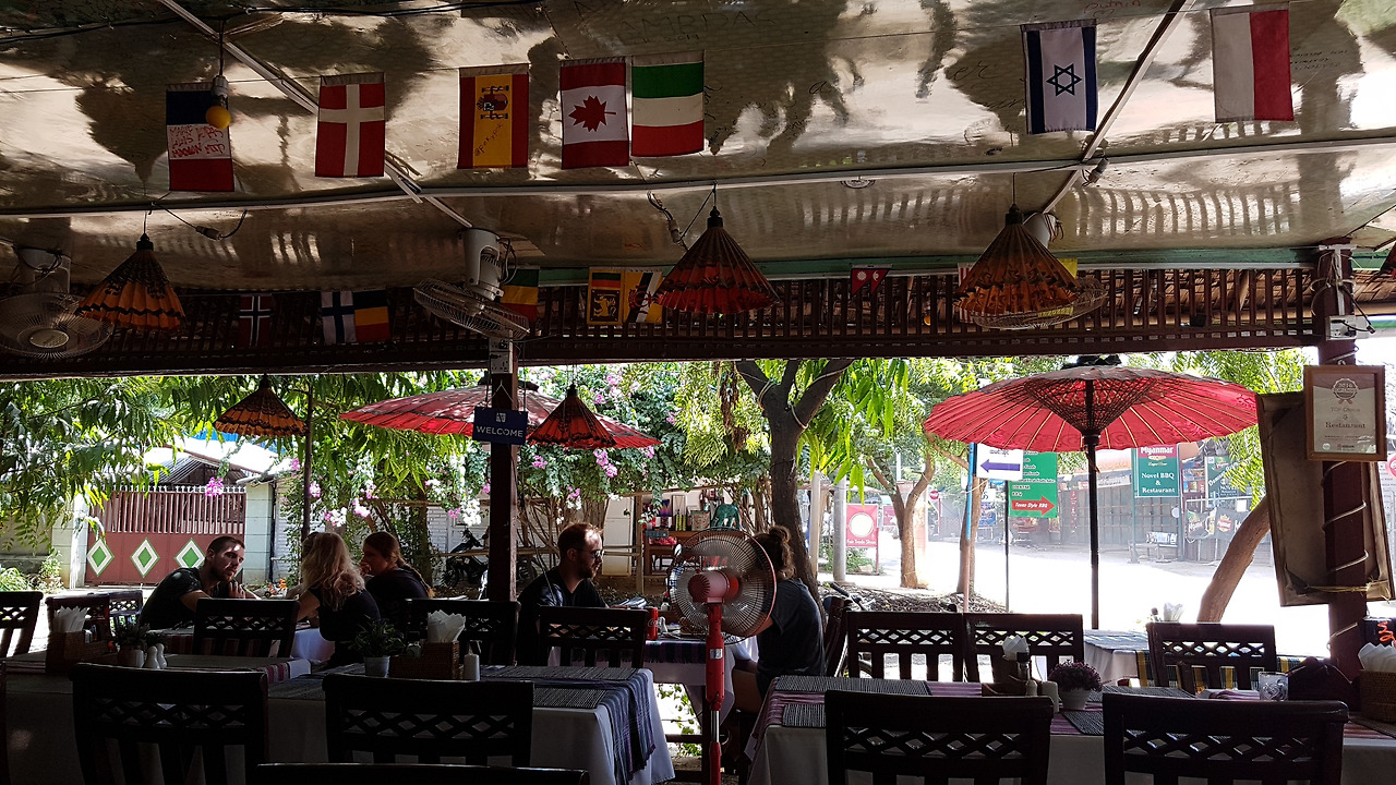 이곳은 물가가 비싼 바간 치고도 햄버거 가격이 좀 있었는데 우리나라 수제버거 가격만큼은 아니지만 우리나라 패스트푸드점 햄버거 가격만큼은 되지만 그런 높은 가격에도 손님이 언제나 와글와글할 만큼 인기 음식점이란다. 그래서 그런지 우리 말곤 죄다 외국인들로 만석이었다.