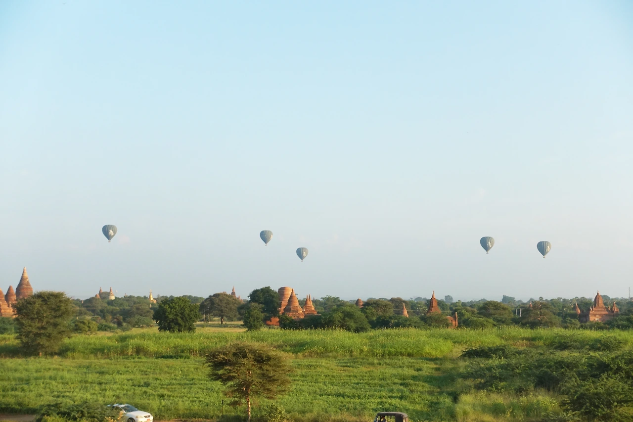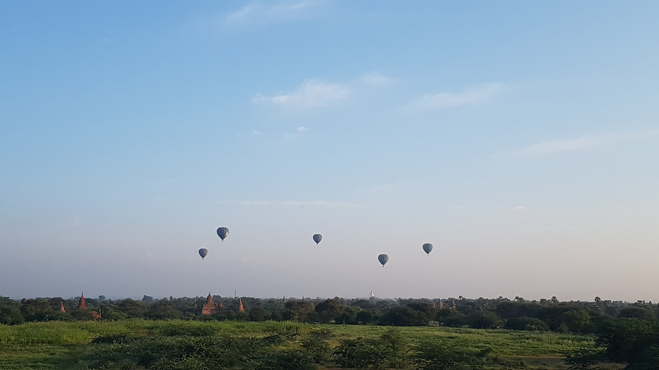 해가 다 떠오르고 단체 관광객이 떠나가고 한적해진 일몰 포인트엔 아직 꽤 많은 사람들이 남아 있었는데 열기구가 떠오르는 모습을 보기 위해서였다. 열기구는 10월을 시작으로 연초까지만 운행하는데 가장 절정은 12월에서 1월이 가장 예쁠 때라고 한다. 그 사실까지 알고 간 건 아니었는데 마침 그곳에서 바간에 올 때 나와 같은 버스를 타셨던 한국 분을 우연히 다시 만나게 되어 이야기 나누며 얻은 팁이었다.