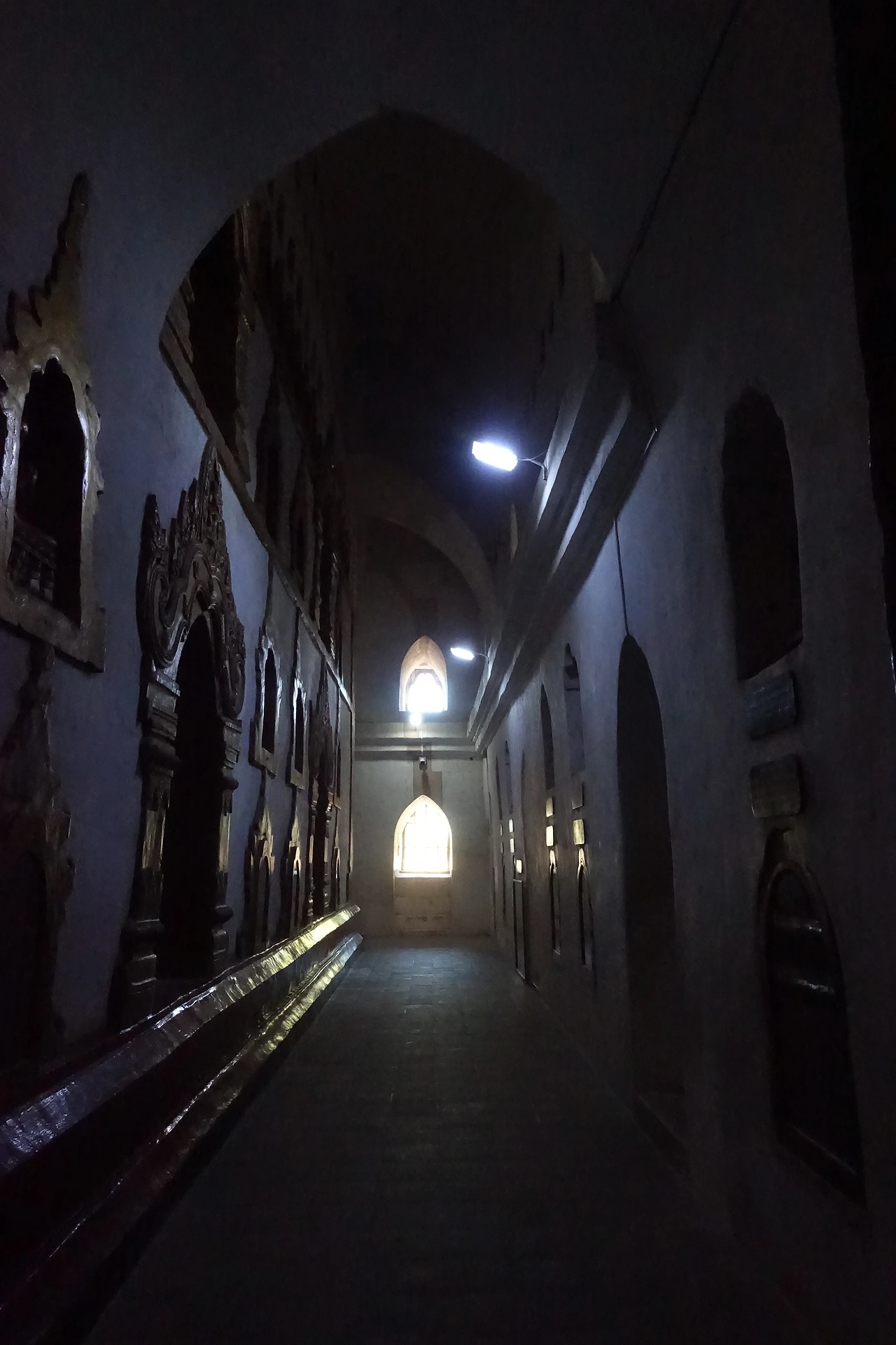 아난다 불상 중심으로 두 군데의 동굴같이 어둡고 높은 세 개의 통로가 둘러싸고 있는데 가장 중앙의 통로는 왕의 통로로 왕만이 다닐 수 있는 통로이고 두 번째 통로는 관료들이 다니는 통로 세 번째 가장 바깥 길은 백성들이 지나다닐 수 있는 통로라고 한다. 그런데 왕이 다니는 통로에서 불상을 바라볼 경우 불상은 매우 근엄하고 무서운 표정으로 내려다보고 있지만 백성들이 다니는 가장 바깥쪽에 가서 바라보는 불상은 한없이 인자한 미소를 머금고 있는 것으로 유명하다.