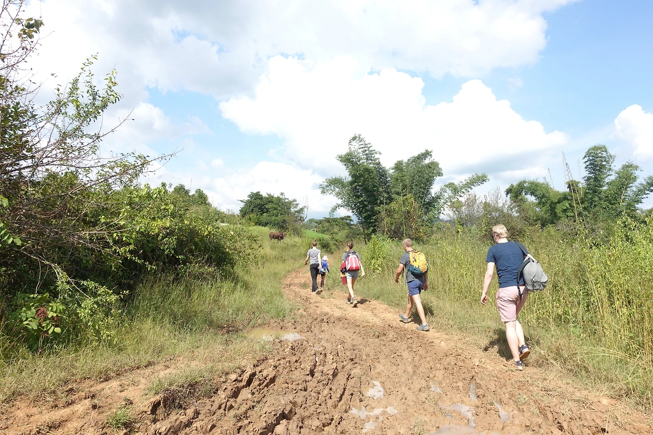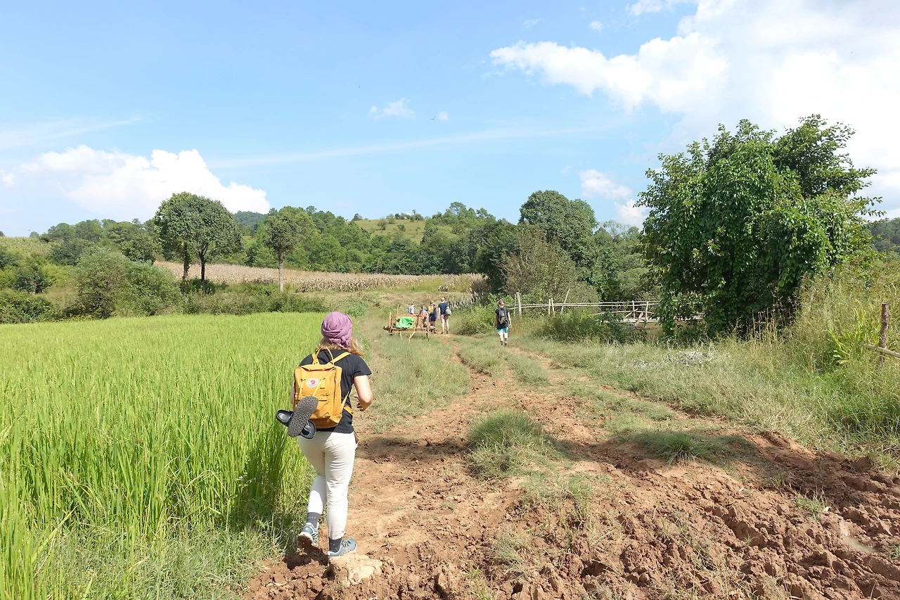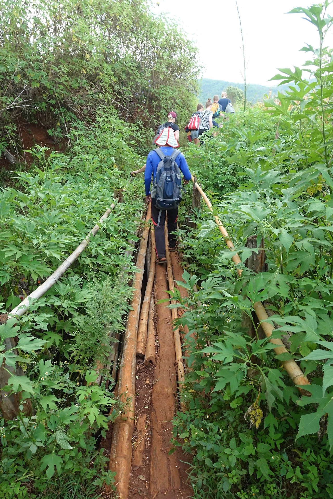 트레킹은 초반은 마을길을 걸어가며 뜨거운 햇빛만 빼면 꽤 괜찮은 것 같았지만 가면 갈 수록 길이 험해졌다. 키보다 큰 옥수수밭 사이길을 걸어야 할 때도 있었고 발이 푹푹 빠지는 진흙길, 산길, 가시가 무성한 길 등 왜 정글킹 에이전시라는 이름이 붙었는지 알만한 코스였다. 다행히 나는 머리부터 발끝 손끝까지 무장을 한 상태라 그런데로 괜찮았지만 반바지에 티셔츠를 입고 트레킹하는 몇몇 멤버들에게는 쉽지 않은 길이었다. 다들 죄다 긁히고 상처나고 찔리고 햇빛에 살이 익어 화상을 입기도 하는 등 사고들이 잇따랐다. 가벼운 복장인 그들에 비해 등산용 장갑까지 낀 내가 유난스러운가 싶기도 했지만 내 선택이 나쁘진 않았던걸로 보인다. 그리고 기대하지 않았던 5000짯짜리 트래킹화가 꽤 자기 역할을 잘 해준 덕에 운동화로 다니기엔 미끄러운 길들도 안전하게 다닐 수 있었다.