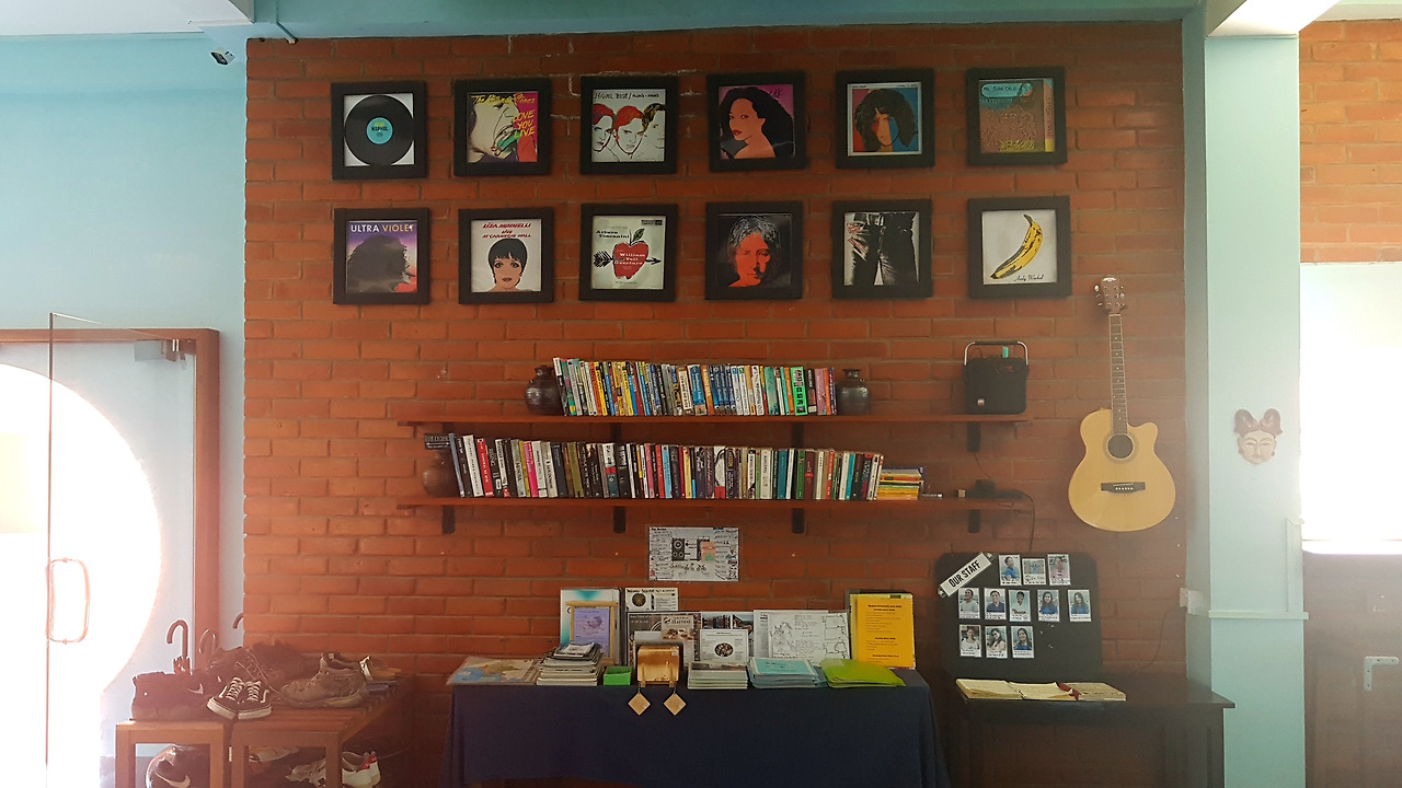 숙소에 들어서자마자 프런트 직원은 딱 거지 꼬락서니나 다름없는 나를 환한 미소로 반겨주었다. 에이전시에서 어제 미리 보내 놓은 내 가방을 내어주며 2층에 있는 예약된 방을 안내해주었다. 남녀 혼숙 도미토리 방은 블록 같은 2층 침대로 각각 앞에는 커튼이 쳐져 있어 개별 공간을 확실하게 구별 지어 주고 있어 걱정했던 것보다는 불편할 것 같지는 않아 보였다. 다행히 만실이 아니라 적당한 위치의 1층 자리에 내 자리를 잡았다. 자리에 앉아 고개를 돌리자마자 보이는 것은 퀸의 love of my life의 가사 한 구절이 적힌 침대 벽이었다. 다른 곳은 어떤가 하고 빈 침대들을 보자 각각 다른 팝송의 가사들이 한 구절씩 침대 벽에 세겨져 있었다. 구석구석 정말 콘셉트에 충실한 숙소였다.