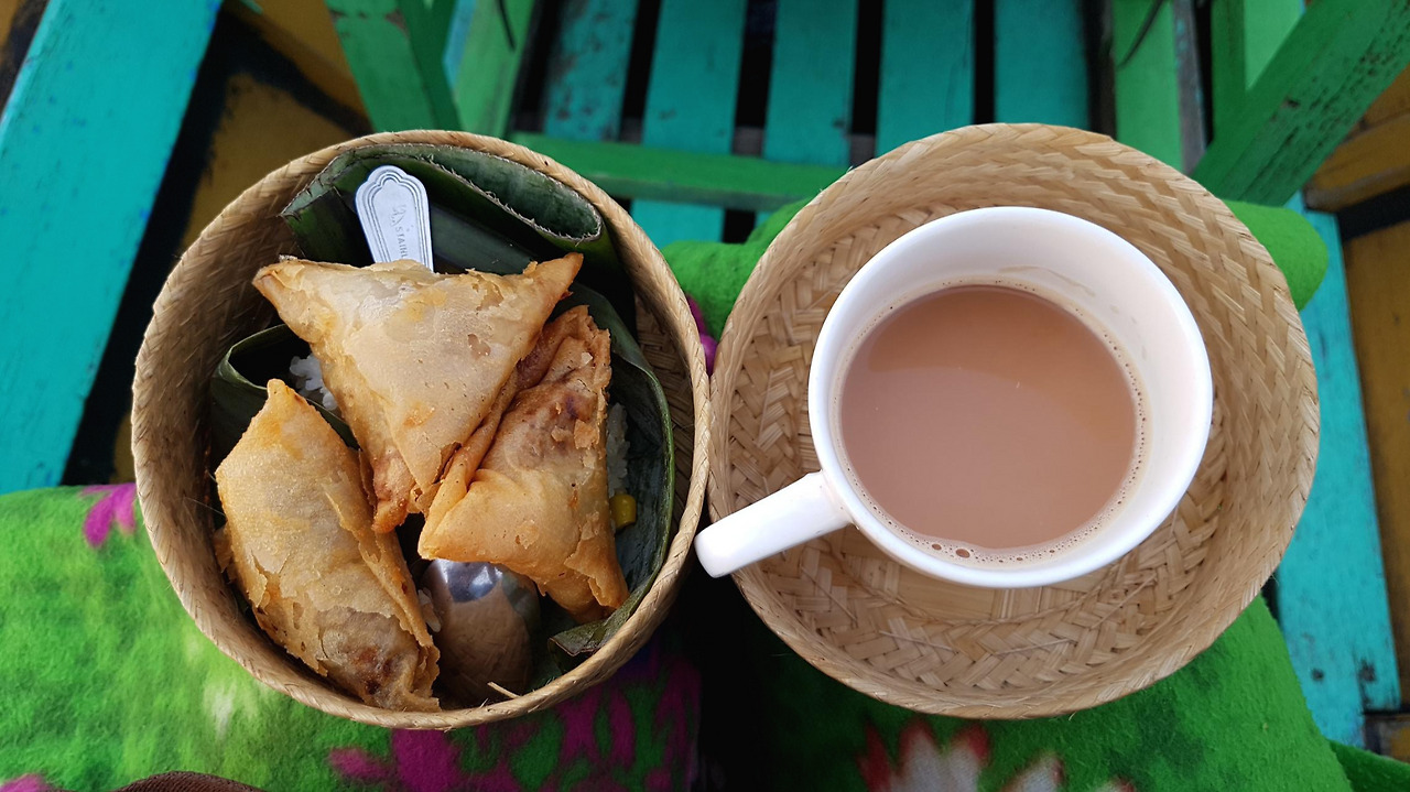 그럼 맛은 어땠느냐 하면 솔직히 이쯤 오면 스스로에게 의문이 들기도 한다. 미얀마에서 고무타이어를 튀겨줬어도 맛있다고 하지 않았을런지 저 삼각형 튀김은 크로켓? 같은 맛이 나서 맛있었고 저 커피같이 생긴 건 인스턴트 짜이 맛인데 그게 또 그렇게 맛있을 수가 없었다. 이렇게 모두 잘 먹다 보니 미얀마에서 살이 포동포동 쪘었는데 미얀마 인레 시장에서 샀던 은반지를 약지에 맞춰서 사 왔는데 한국에 왔더니 중지에도 헐떡일 만큼 미얀마에선 뭐든 참 잘 먹고 많이 먹고 다녔다.