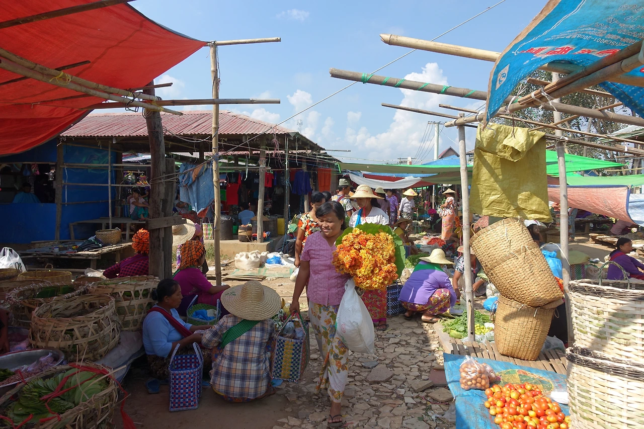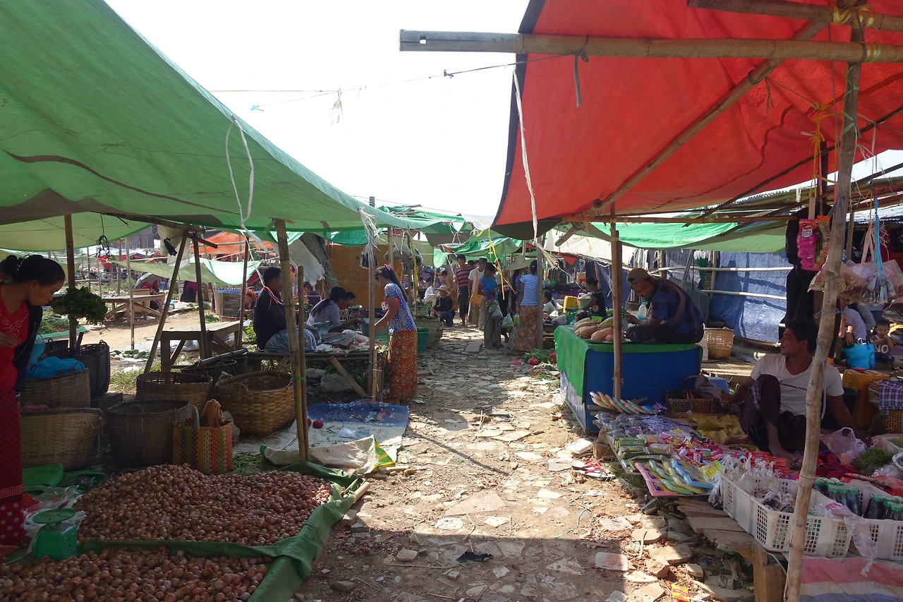 네 번째는 쇼핑을 한 텀 쉬었으니 다시 쇼핑투어다. 이번엔 어느 시장이었다. 인레의 시장보다 관광객들을 대상으로 하는 시장인지 외국인의 모습이 꽤 보였다. 인레 시장엔 없던 호객 군까지 등장하고 은제품을 사라고 너도나도 들러붙었다. 가격은 인레 시장보다 훨~씬 비쌌다. 미얀마에서 은제품을 살 때는 검정 돌에 비벼주며 은빛이 나는 걸 확인시켜주고 사도록 하는데 어제 분명 그렇게 해서 인레 시장에서 은반지를 하나 샀었건만 팔랑귀는 어제의 경험을 잊고 홀랑 반지와 귀걸이를 흥정해서 샀는데 하루도 못 끼고 귀가 간지럽고 반지를 낀 손가락이 검게 변해서 당장 버려야 했다. 검정 돌에 확인 안 시켜줄 때 의심을 해봤어야 하는데 내 불찰이다.