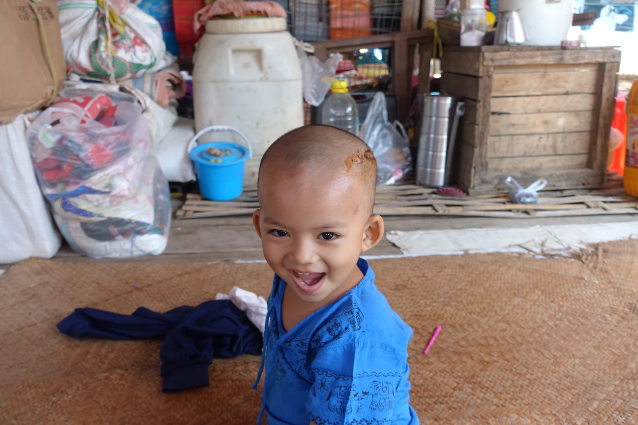 그러다가 귀여움이 한도 초과인 꼬마를 만나게 되었는데 어디서 상처가 난 건지 머리엔 꿰맨 자국이 그대로였다.