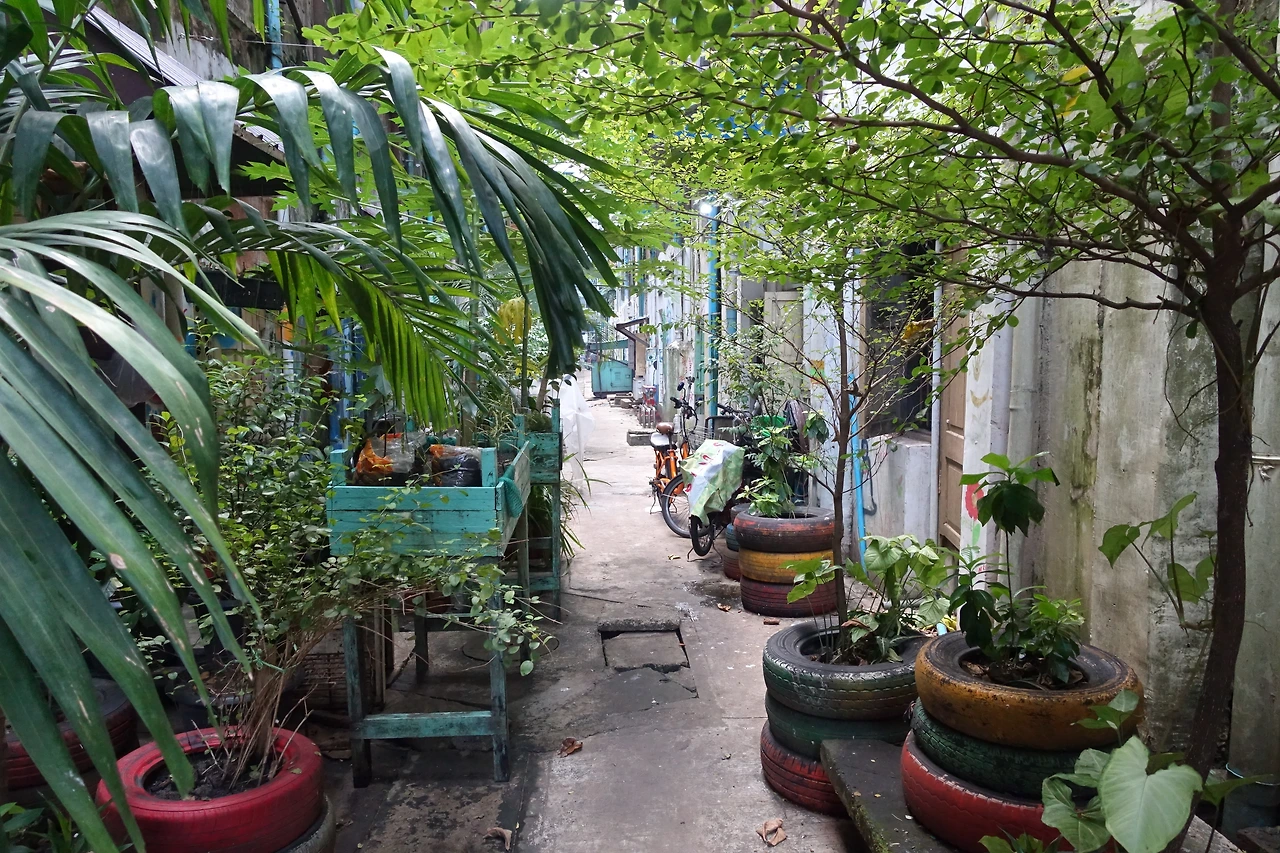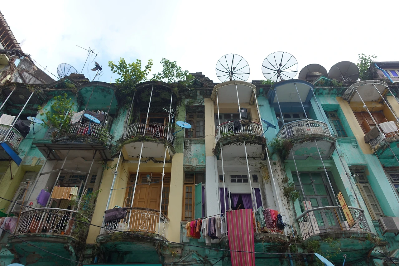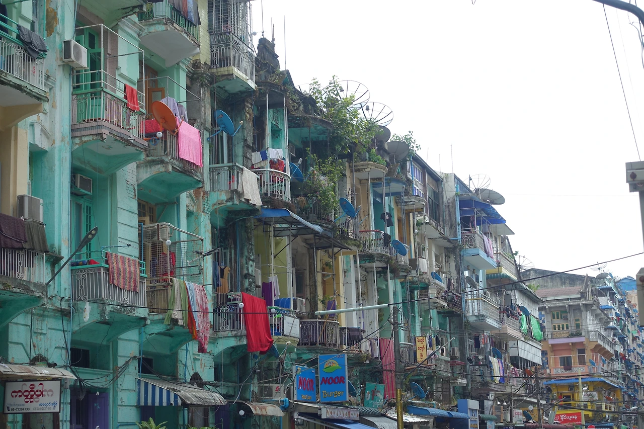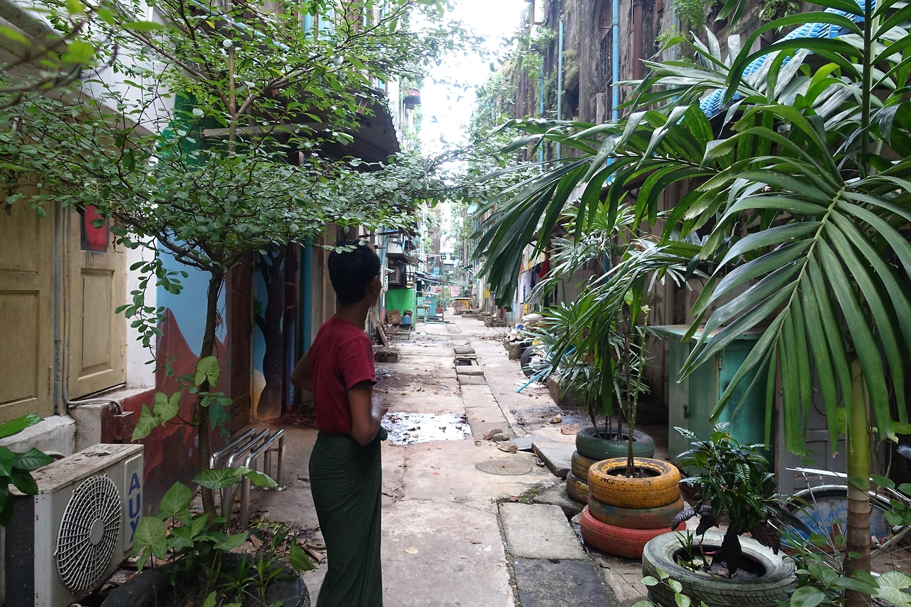 그다음 코스는 양곤 벽화골목이었다. 사실 이건 얻어걸린 장소였다. 구글 지도에 검색해도 딱히 검색되지 않지만 어떤 블로거분이 링크 걸어둔 지도를 저장해 두었던 게 이곳을 찾아갈 수 있던 방법이었다. 사실 이곳을 찾는데 꽤 오래 걸렸다. 규모가 큰 것도 아니고 샛길 뒤에 있는 뒷골목이다 보니 가는 사람이 많은 것도 아니고 유명한 관광지도 아니었다. 몇 번 주변을 맴돌다 겨우 들어간 벽화골목은 좀 스산하고 무서웠다.