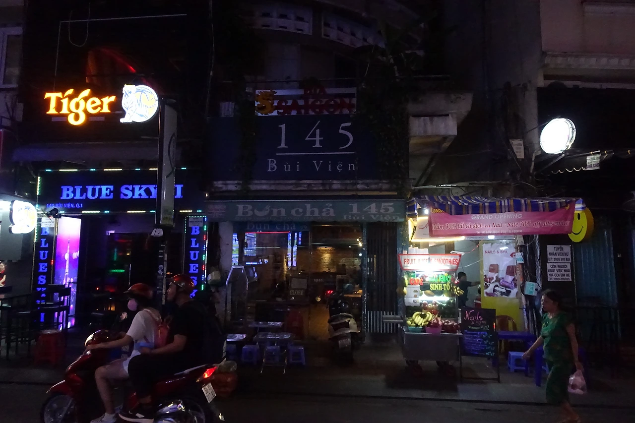반미를 먹고 또 얼마나 걸었을까? 드디어 목적지 '분짜 145'에 도착했는데 저 굳게 닫힌 문과 불빛 한 줄기 없이 어두컴컴한 내부는 뭐란 말인가? 설마 문을 안 연걸까? 믿을 수 없는 마음에 가게 앞에 다가가 보니 오늘은 사정상 일찍 닫는다는 종이쪽지가 영어로 적혀 붙어 있을 뿐이었다.
