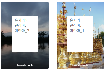그렇게 그럭저럭 유지하던 블로그를 멈추고 브런치로 넘어오게 된 것은 플랫폼의 성격이 나와 어울리지 않는단 회의감과 밀려드는 업자들의 접근에 진절머리가 났던 탓이었다. 하지만 가장 매력 있게 느껴진 건 브런치 북이었다. 실제 책을 발간하는 것은 아니지만 하나의 책처럼 묶이는 그 형태가 탐이 났다. 그래서 블로그에 쓰고 있던 여행기를 멈추고 브런치에서 새롭게 미얀마 여행기를 쓰기 시작했다.