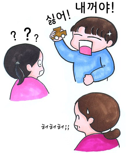 잘 놀다가도 자기 꺼라고 누나랑 티격태격